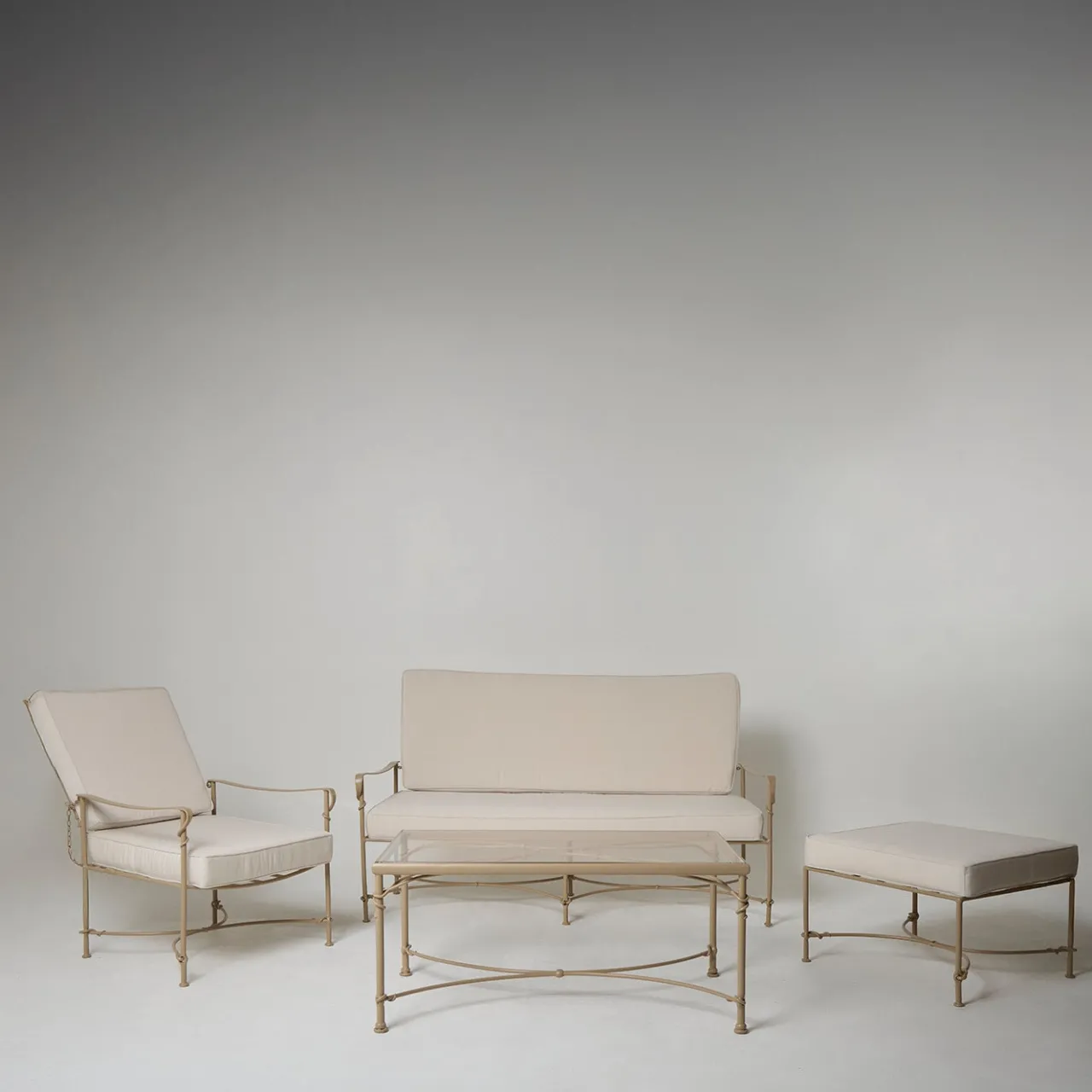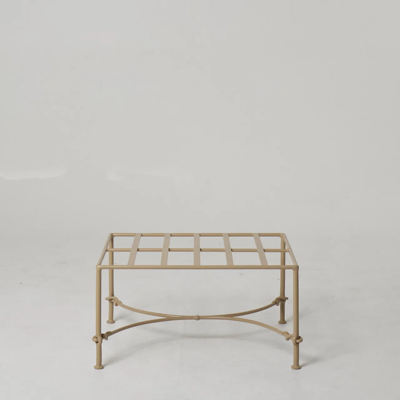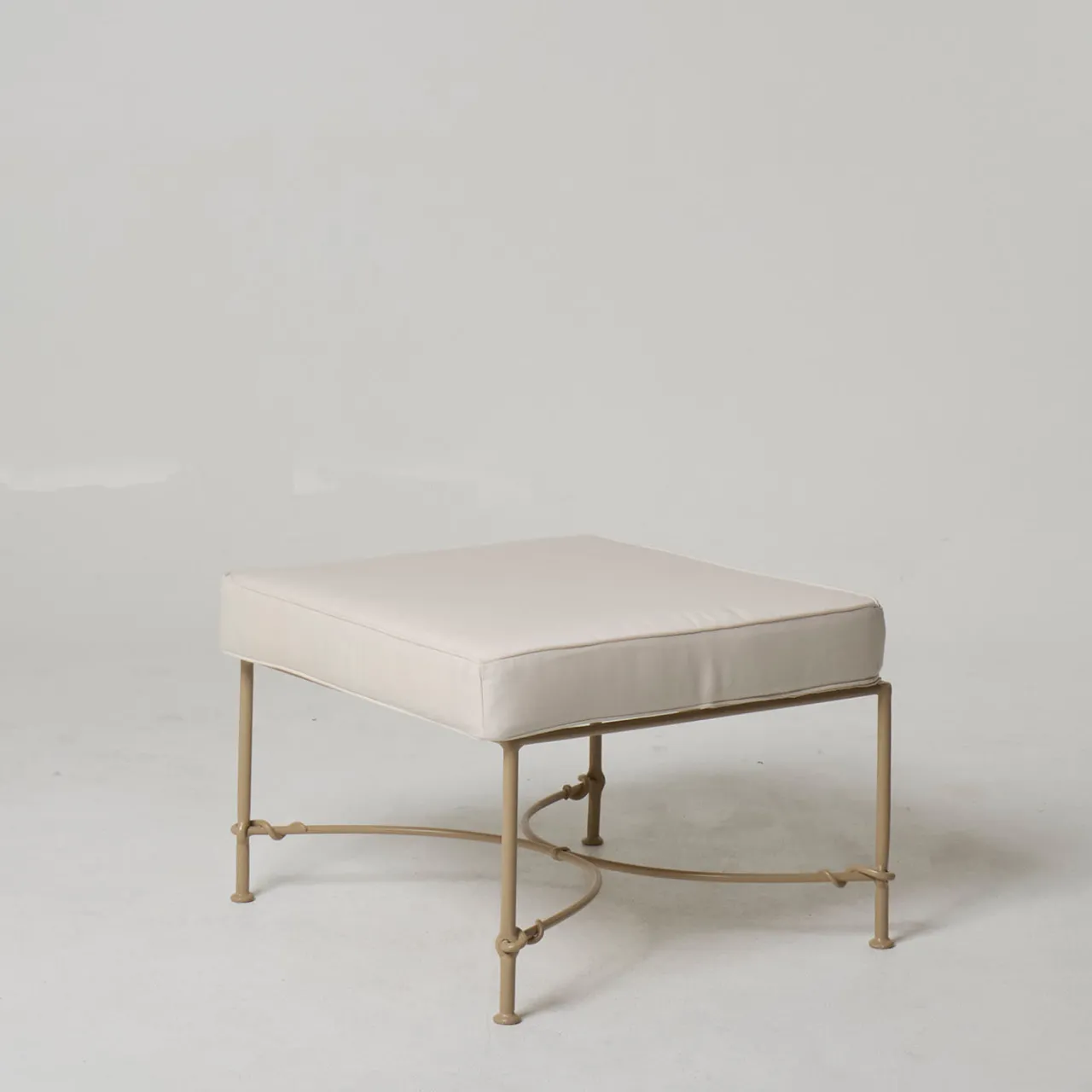 Questo versatile pouf funge da poggiapiedi o da seduta aggiuntiva, integrandosi perfettamente in ambienti esterni moderni e classici. La struttura in ferro finemente forgiato, trattata con un rivestimento resistente agli agenti atmosferici, garantisce robustezza e longevità. Un generoso cuscino imbottito e rimovibile aumenta il comfort, rendendolo un elemento invitante in qualsiasi ambiente esterno. Abbinato a lettini o divani, questo pouf offre un modo pratico ed elegante per migliorare il relax negli spazi all’aperto.