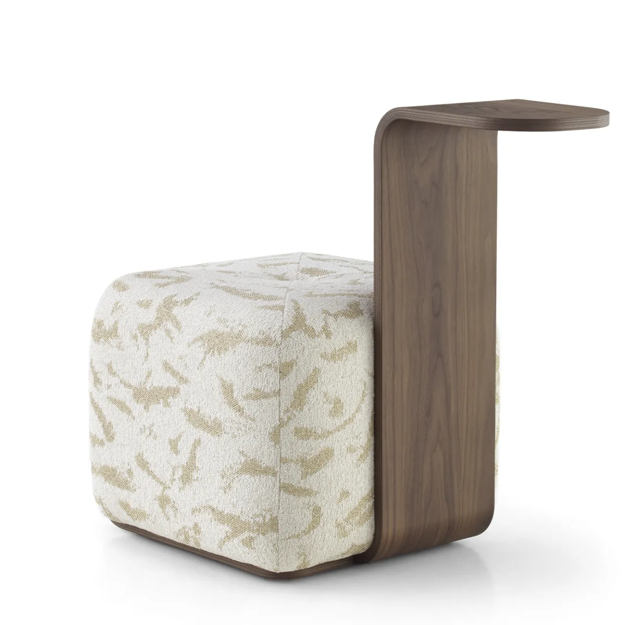 Il pouf a cubo bianco Dondo presenta un design compatto e imbottito con una morbida copertura in tessuto. È dotato di una maniglia in noce Canaletto con finitura naturale che si incurva elegantemente verso l’alto, offrendo una presa estetica e funzionale distintiva. Il pezzo poggia su ruote girevoli mini con un sistema di freno pesante Stopp che garantisce stabilità e mobilità senza sforzo. L’imbottitura è realizzata in tessuto Dedar di alta qualità, che aggiunge durata e raffinatezza.