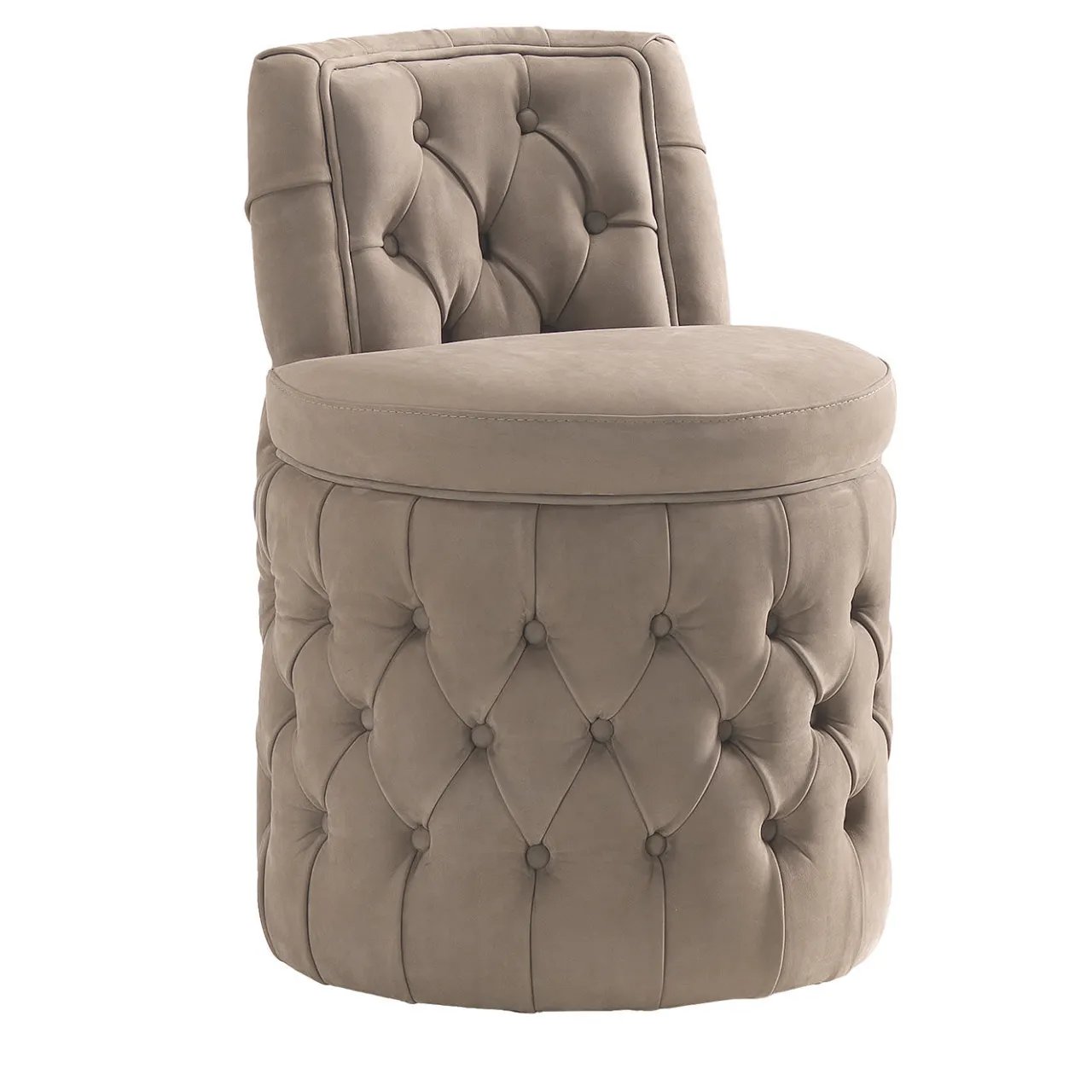 Un elegante invito al riposo e al relax, questo splendido pouf si distingue per un design minuzioso e di grande comfort. Realizzato a mano con un savoir-faire senza tempo, presenta una struttura in legno massiccio, una morbida imbottitura in poliuretano e un rivestimento in pregiata pelle nabuck, meticolosamente trapuntata a mano con una straordinaria maestria sartoriale.