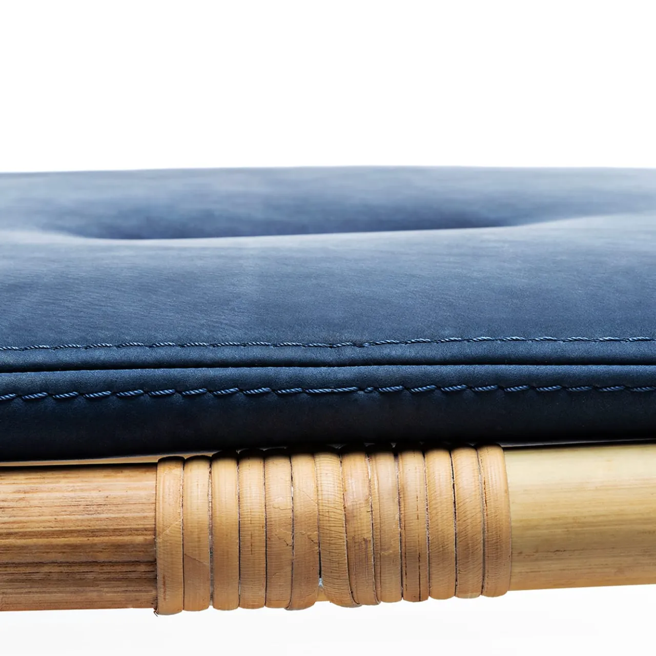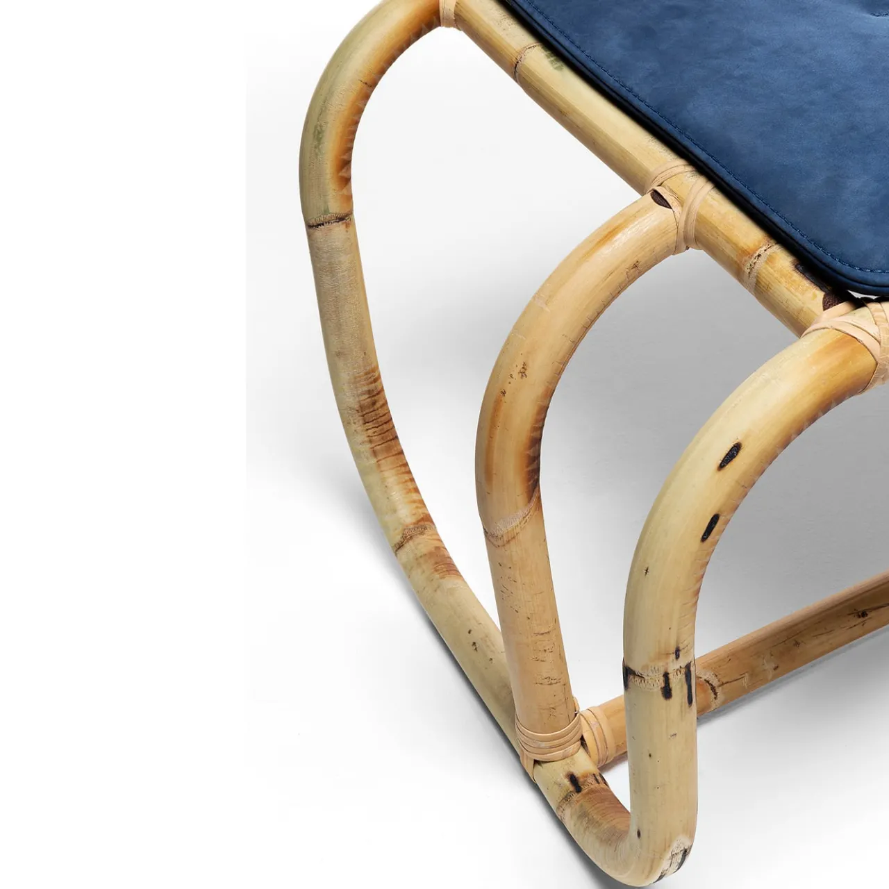 Linee pulite e organiche, ispirate alla natura, definiscono questo splendido design di Massimo Castagna, caratterizzato da un tratto continuo di canna naturale che costituisce l’intera struttura. Arricchito da un cuscino in pelle Nubuck di colore blu. Si consiglia una copertura per esterni per proteggere il pezzo quando viene lasciato all’aperto; si prega di contattare il Concierge per i dettagli. Personalizzabile su richiesta per soddisfare qualsiasi esigenza di arredamento o gusto. Se i prodotti vengono collocati completamente all’esterno, si consiglia l’acquisto di copridivano a prezzo maggiorato. Contattare il Concierge per ulteriori informazioni e opzioni.