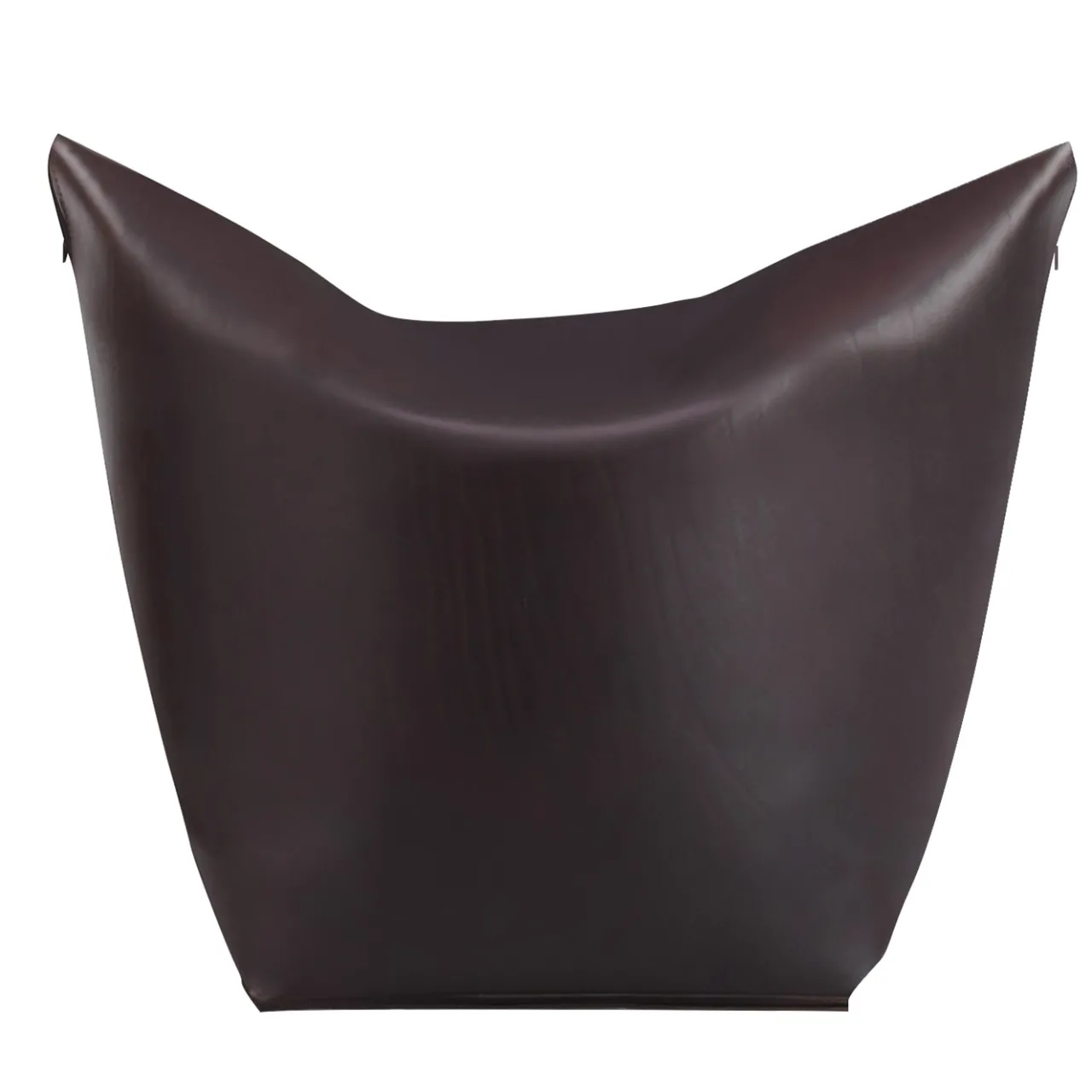 Questa raffinata poltrona a sacco è avvolta con cura in un unico pezzo di pelle pieno fiore marrone scuro, le cui pieghe ricordano quelle degli origami. La sedia, che assume la forma del muso di un gatto, è un posto molto comodo dove sedersi.