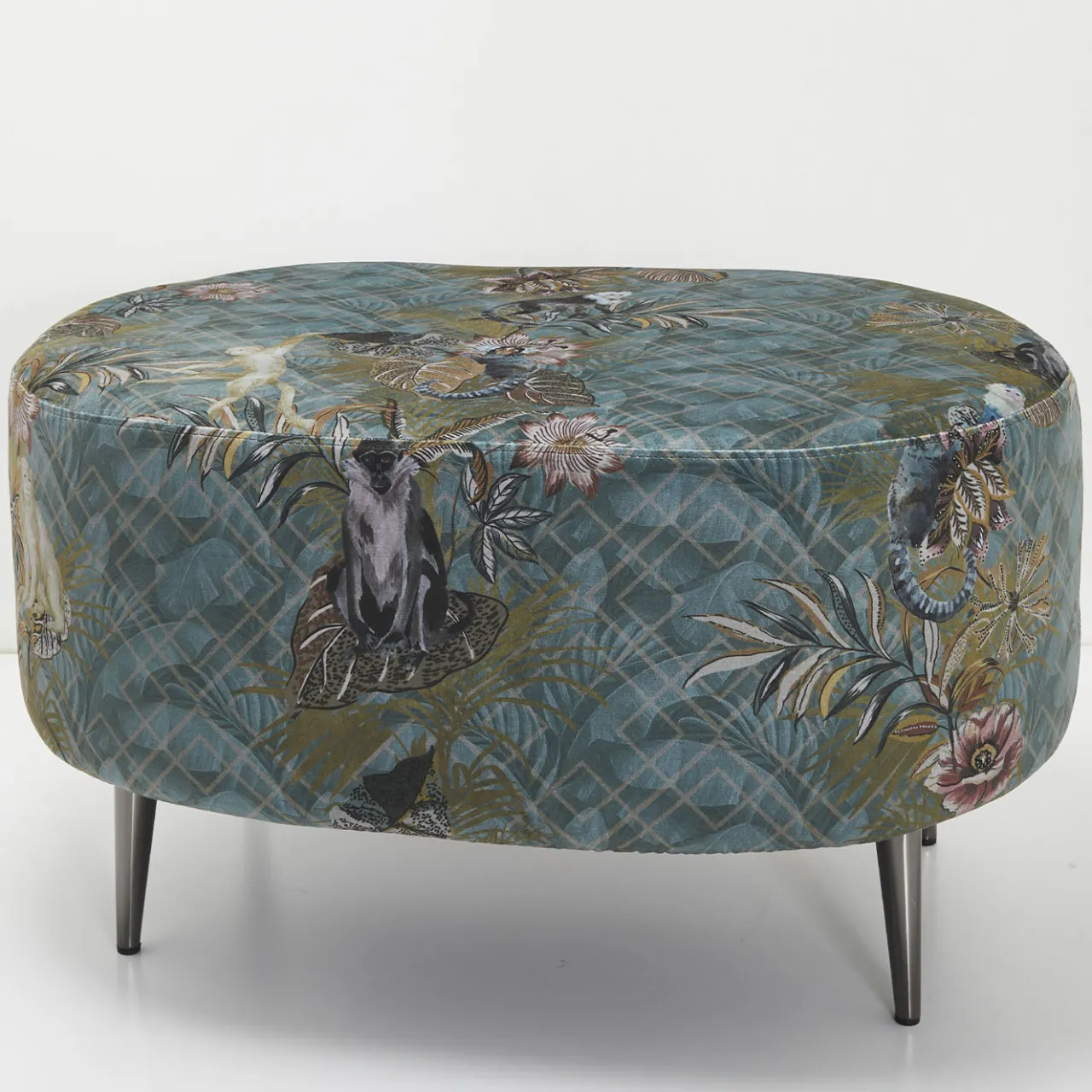 Questo pouf presenta una struttura morbida e imbottita che offre un comodo posto a sedere extra o un poggiapiedi. È rivestito in un morbido tessuto di velluto adornato con un intricato motivo jungle, che combina elementi botanici e immagini di fauna selvatica per un’estetica unica e vivace. Questo pezzo include gambe visibili per la stabilità ed è completamente rimovibile per una facile pulizia. Personalizzabile con qualsiasi immagine di Instabilelab, fonde funzionalità con uno stile distintivo. Contatta il Concierge per ulteriori dettagli.