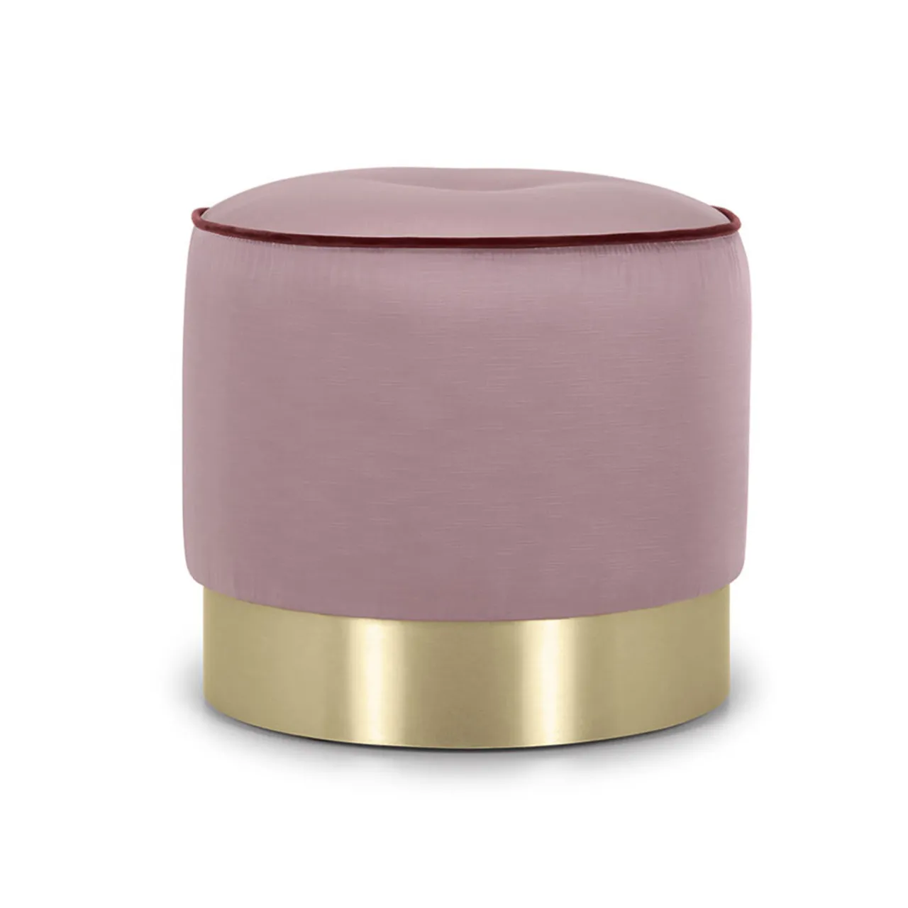 Glamour e sofisticato, questo pouf cilindrico evoca con il suo rivestimento in raso rosa i colori seducenti del cielo mattutino, un fenome naturale rappresentato dalla dea Eos nella mitologia greca. Una base in laminato luminoso arricchita da una finitura in ottone satinato sostiene la seduta in peluche, il cui profilo superiore è delicatamente accentuato da un bordino a contrasto.