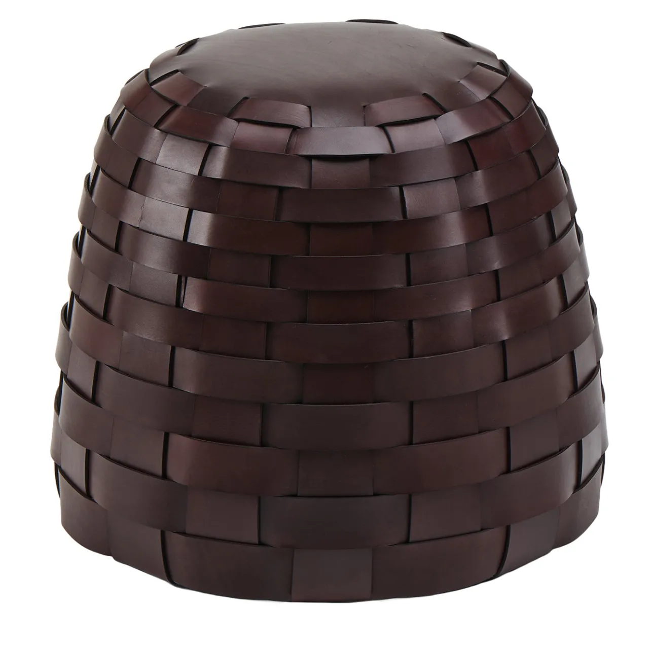 Trama è un pouf di medie dimensioni progettato da Viola Tonucci, con un esclusivo rivestimento in pelle intrecciata a mano in una ricca tonalità cioccolato. Ha un diametro del sedile di 38 cm e un’altezza di 46 cm, offrendo opzioni di seduta versatile o poggiapiedi. La forma morbida e arrotondata e la tessitura finemente realizzata aggiungono texture e profondità, rendendolo un’aggiunta elegante e funzionale a vari ambienti interni.