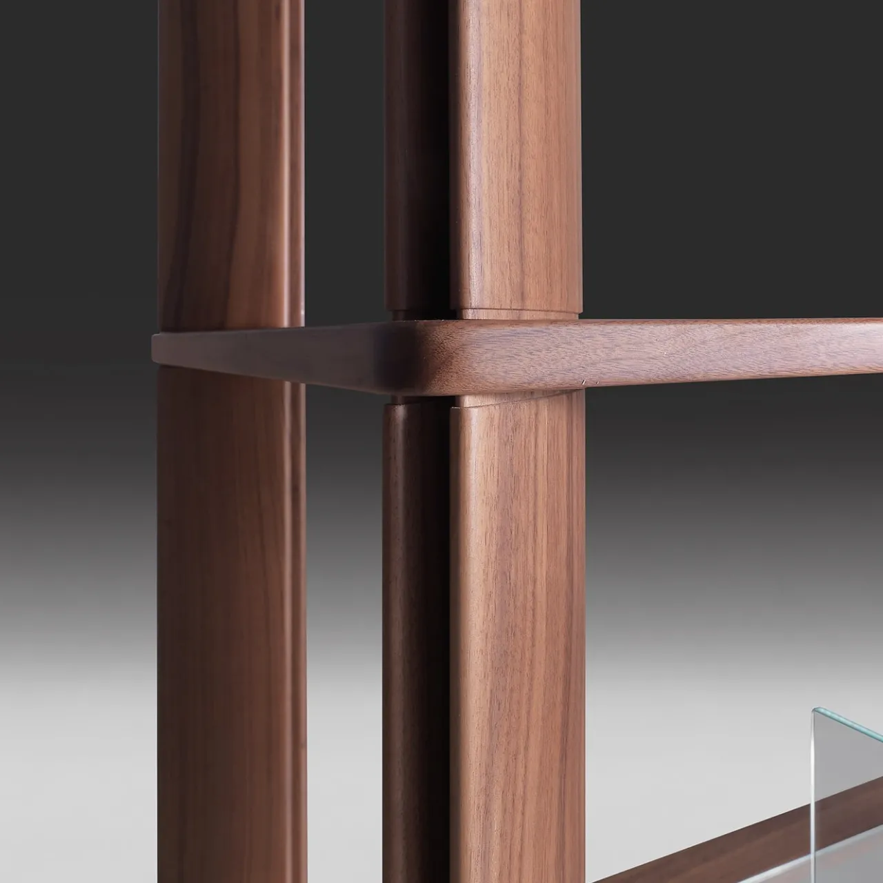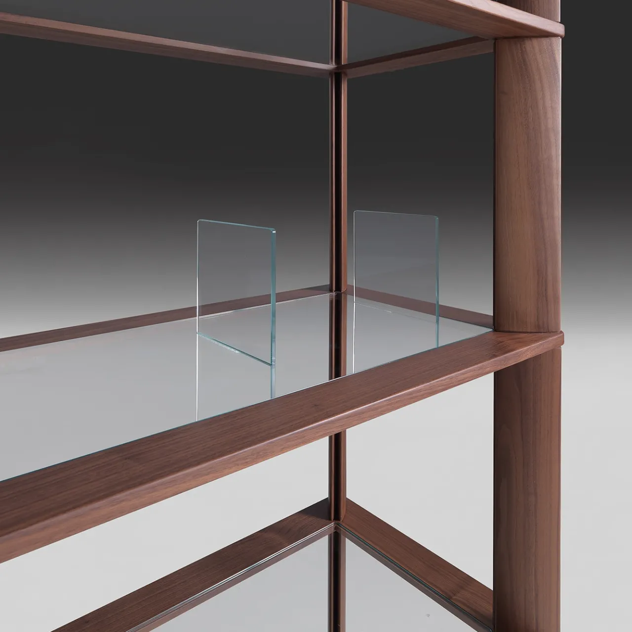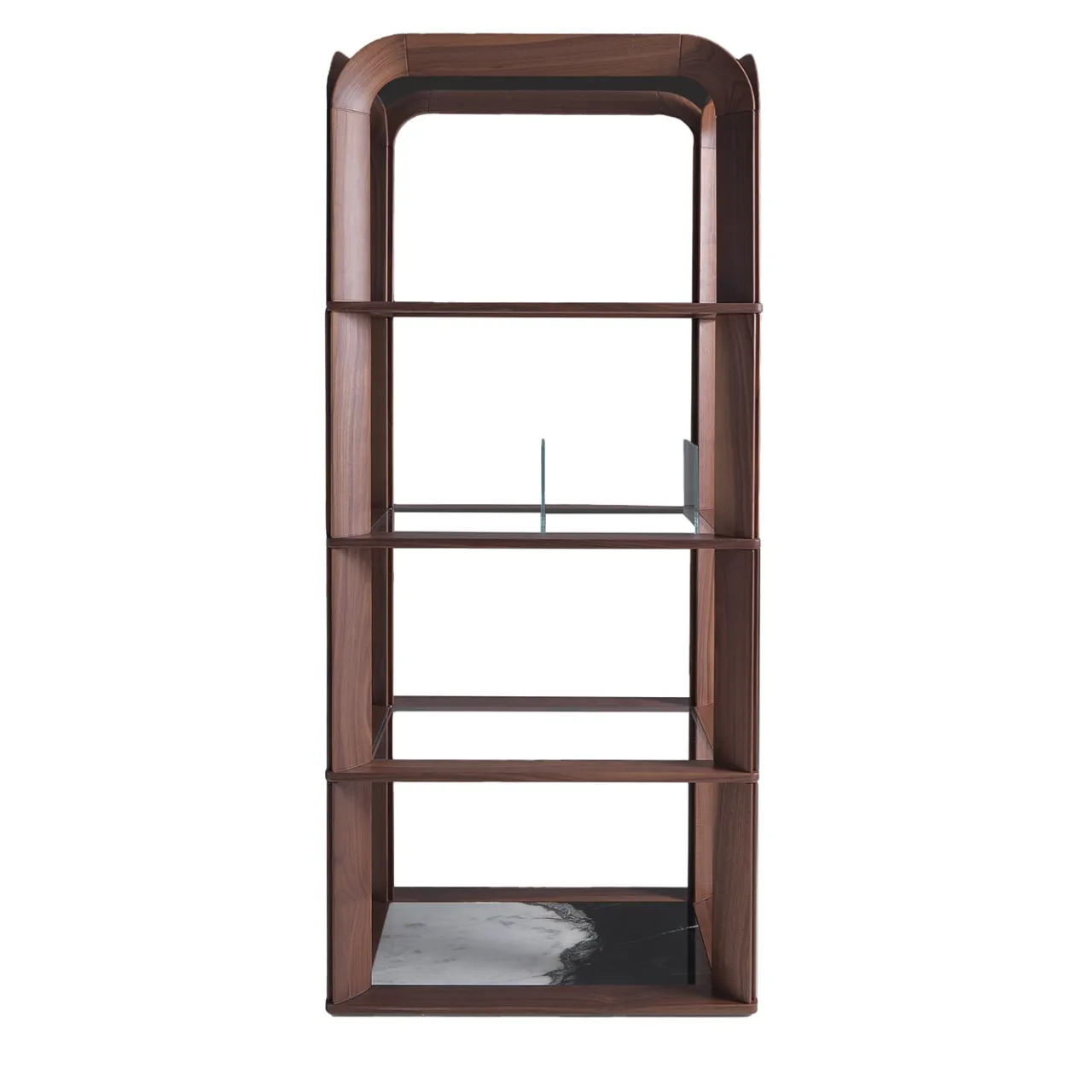 Un design senza tempo, questa scaffalatura sarà il complemento ideale per un arredamento pulito in stile contemporaneo. Realizzato in noce canaletto, presenta tre ripiani in vetro e un ripiano inferiore in marmo Dalmata. Per ulteriori informazioni e opzioni di personalizzazione, consultare il Concierge.
