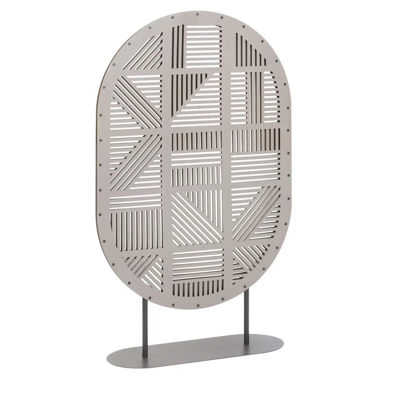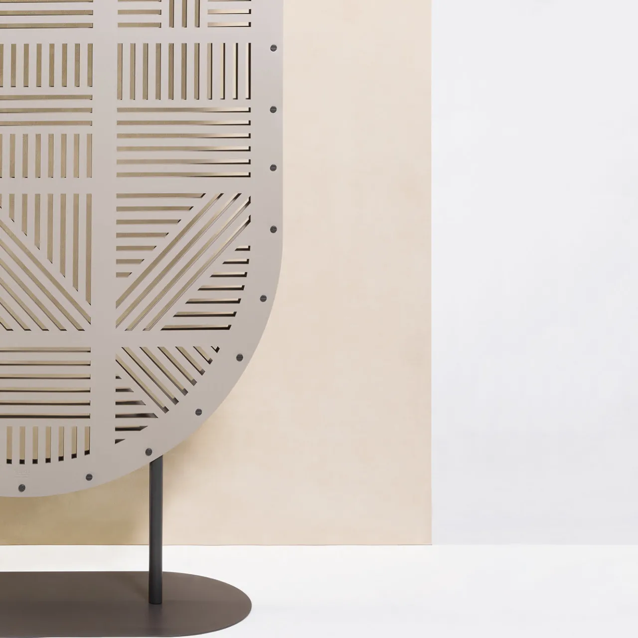Realizzato in pregiata pelle rigenerata, il paravento Ivy si appoggia su una struttura autoportante in metallo verniciato. Disponibile in tre diversi motivi di taglio, Promenade, Vienna e Venezia, il paravento crea un’atmosfera elegante e originale per ogni stile. Perfetto per dividere visivamente gli spazi aperti o per creare un accogliente angolo lettura.
