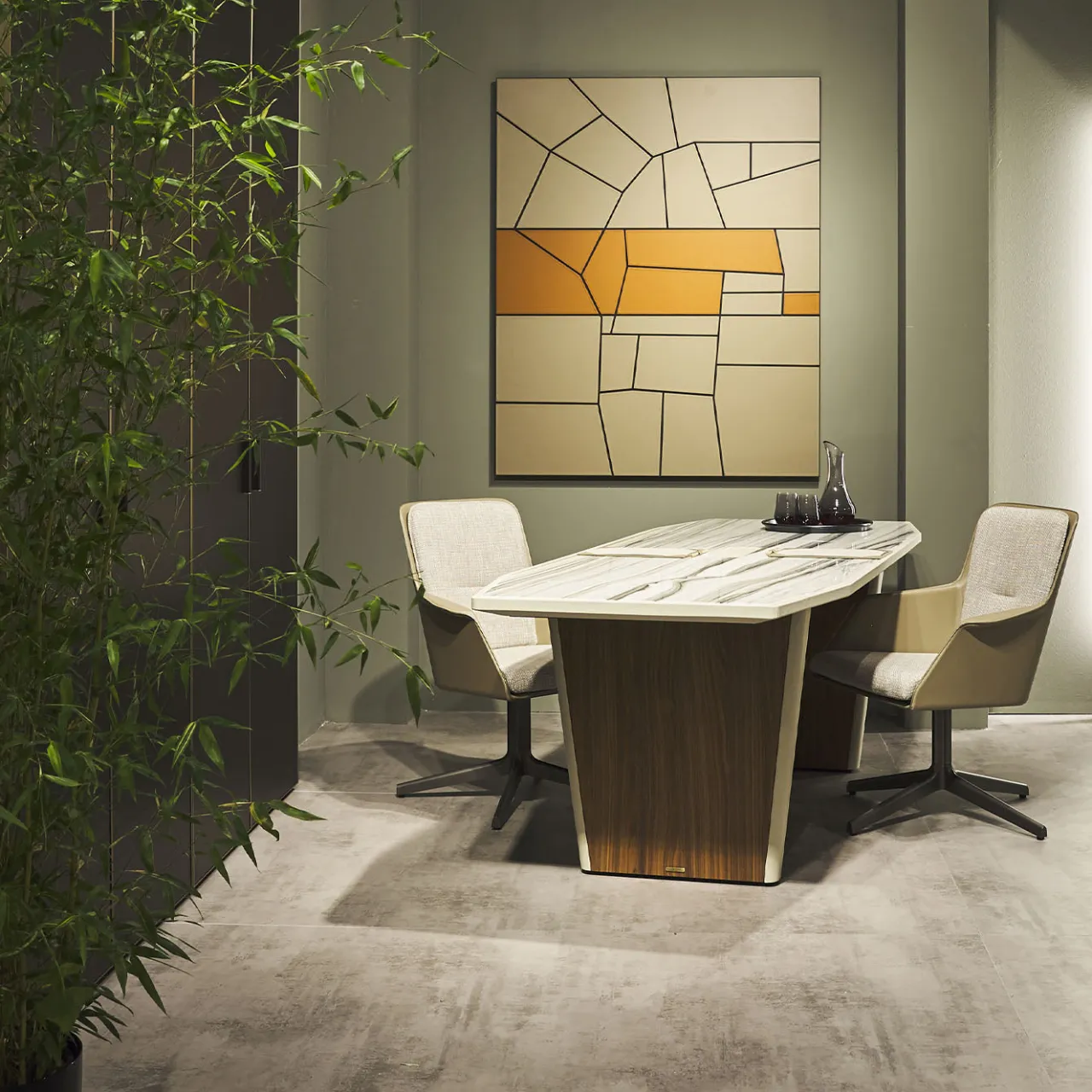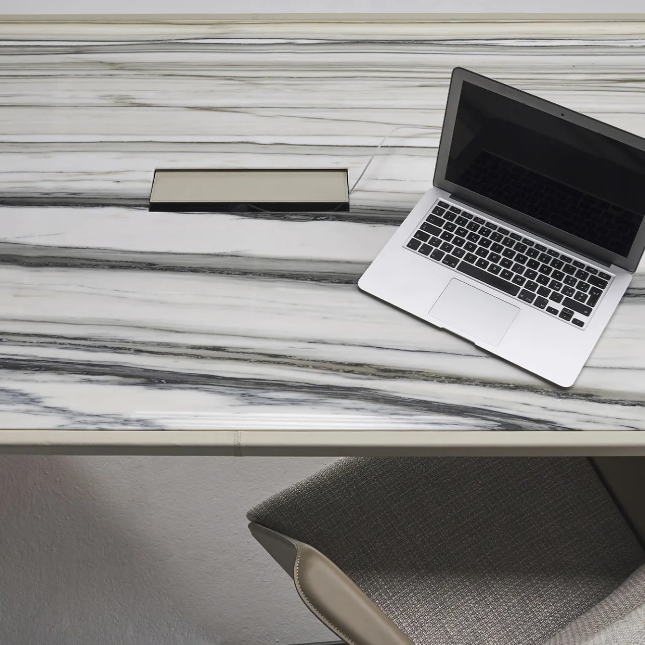 Linee pulite e dinamiche ispirate agli aerei definiscono questo scrittoio, un gioiello d’arredo che sfoggia esclusivi inserti in pelle che interagiscono coerentemente con la preziosità del piano in marmo Zebrino. Grazie al loro design curvo e affusolato, le gambe ricordano i venti degli aerei, rafforzando poeticamente l’ispirazione originale del design. USB opzionale. Contattare il Concierge per varianti, opzioni di personalizzazione e prezzi.