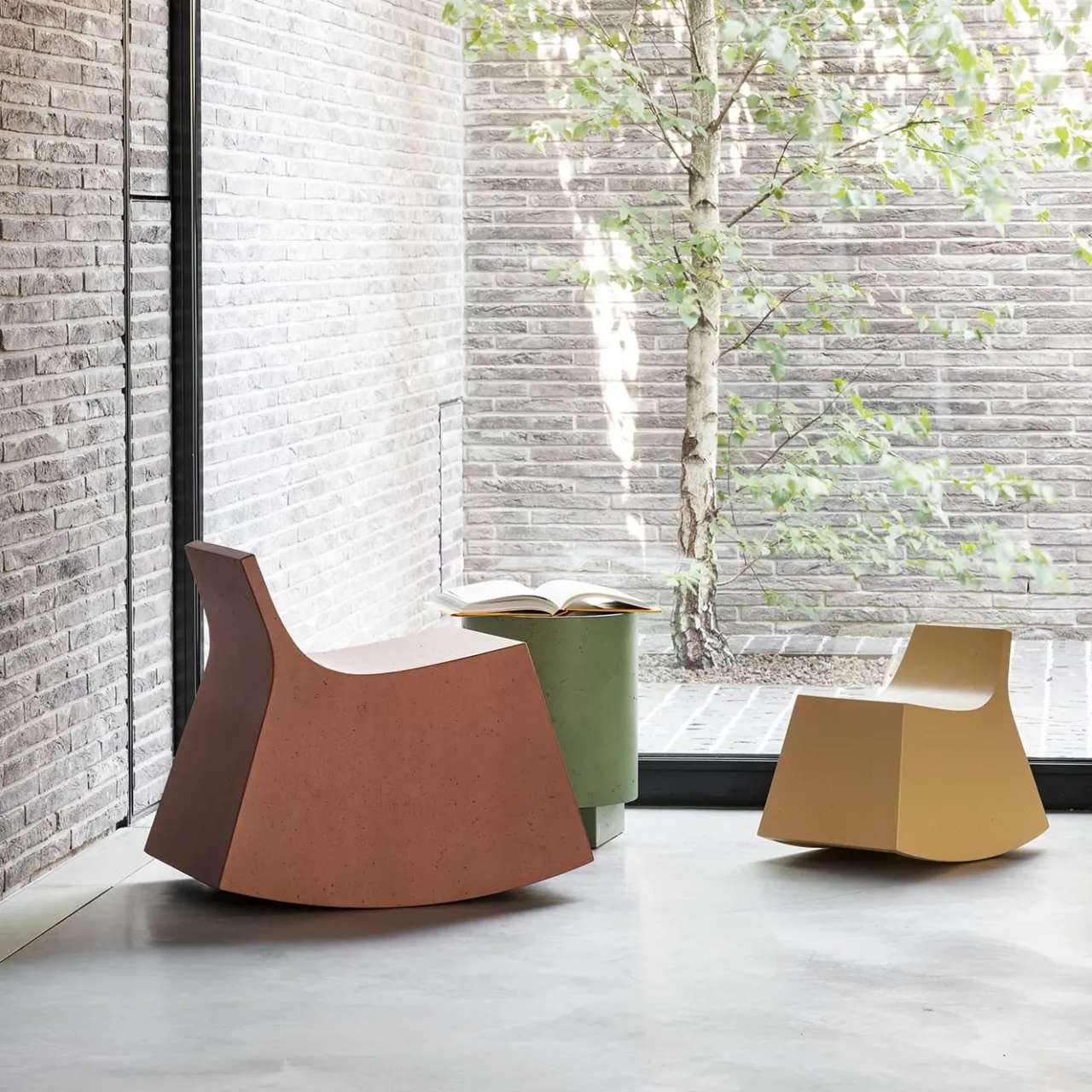 Disegnata da Defne Koz e Marco Susani, Burano è una sedia a dondolo che combina ironicamente la sua forma solida e massiccia con l’equilibrio instabile della sedia a dondolo. Divertente, orgogliosamente solida ma allo stesso tempo leggera. È perfetta per dondolarsi e dondolare leggendo un libro o ascoltando buona musica, in salotto o in soggiorno. Realizzata in CIMENTO®, è disponibile in diversi colori e in una versione più piccola pensata per i bambini. Chiedete al Concierge per ulteriori dettagli.