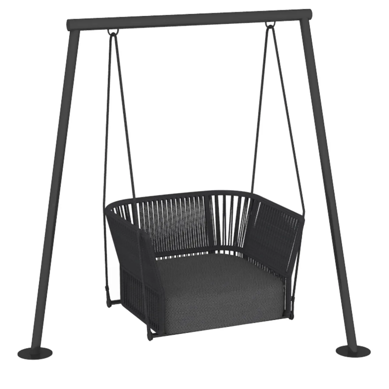 Questa deliziosa sedia Swing della collezione Cliff in grigio scuro è ideale per personalizzare il vostro spazio esterno. Gli elementi tipici, come la corda nautica sintetica, sono accompagnati dalla forma contemporanea del prodotto. L’altalena ha una struttura in alluminio ed è sostenuta da corde attaccate alla base. Con un’imbottitura in schiuma ad asciugatura rapida, la seduta è rivestita in tessuto resistente agli agenti atmosferici.
