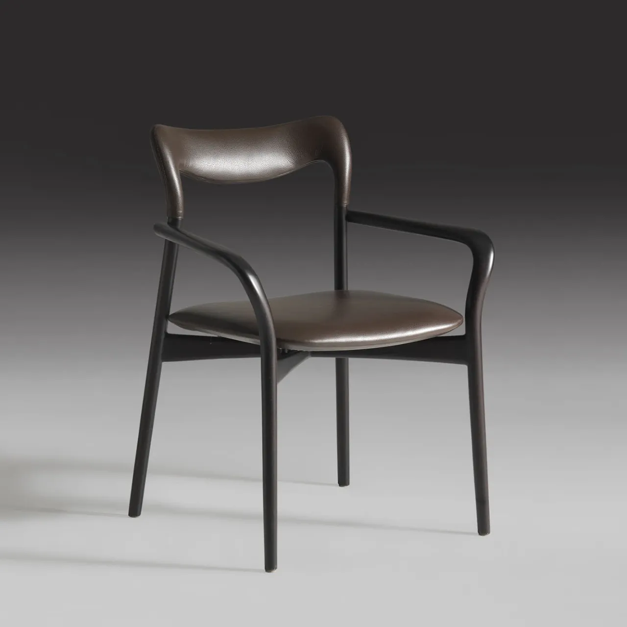 Profili fluidi realizzati in pregiato noce canaletto e interamente rivestiti in pregiata pelle scura EME Lena contraddistinguono questa sofisticata sedia. Ideale da riunire con i gemelli intorno ai tavoli da pranzo contemporanei per un prezioso tocco sartoriale, promette un comfort impeccabile grazie alla sapiente combinazione di linee ergonomiche, seduta imbottita e rivestimento in morbida pelle.