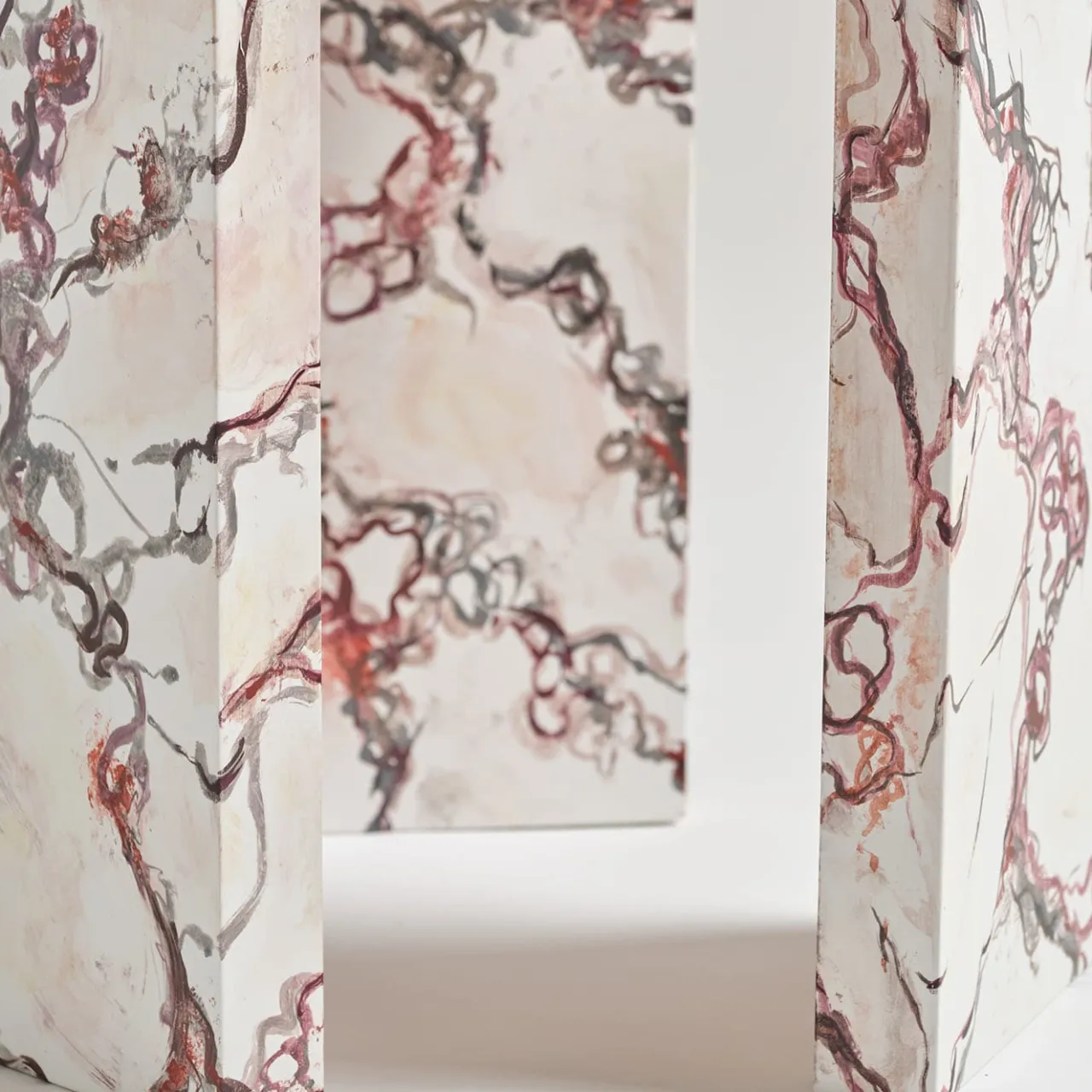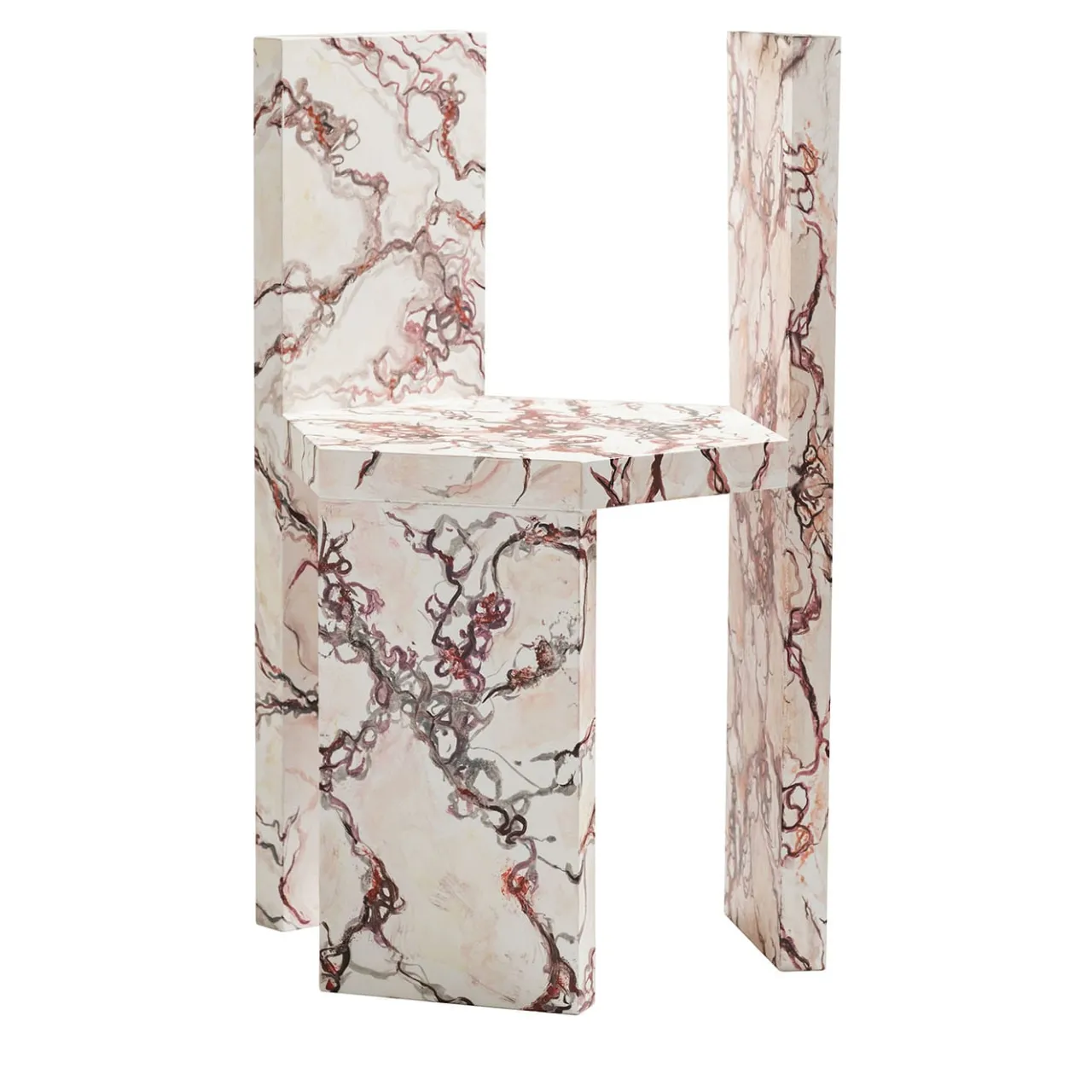 Ispirata al pregiato marmo italiano, questa sedia è realizzata attraverso la fusione di principi di design minimalista e antiche tradizioni. Con elementi compositi di 4 cm di spessore, è solida e funzionale; il doppio schienale/gamba, specchiato, diventa un comodo bracciolo, creando così una nuova configurazione di seduta. Con una struttura in legno rivestita con vernice catalizzata a solvente, una base in poliuretano e una finitura acrilica. La leggerezza, l’eleganza e il design innovativo della poltrona si traducono in un’opera d’arte accattivante.