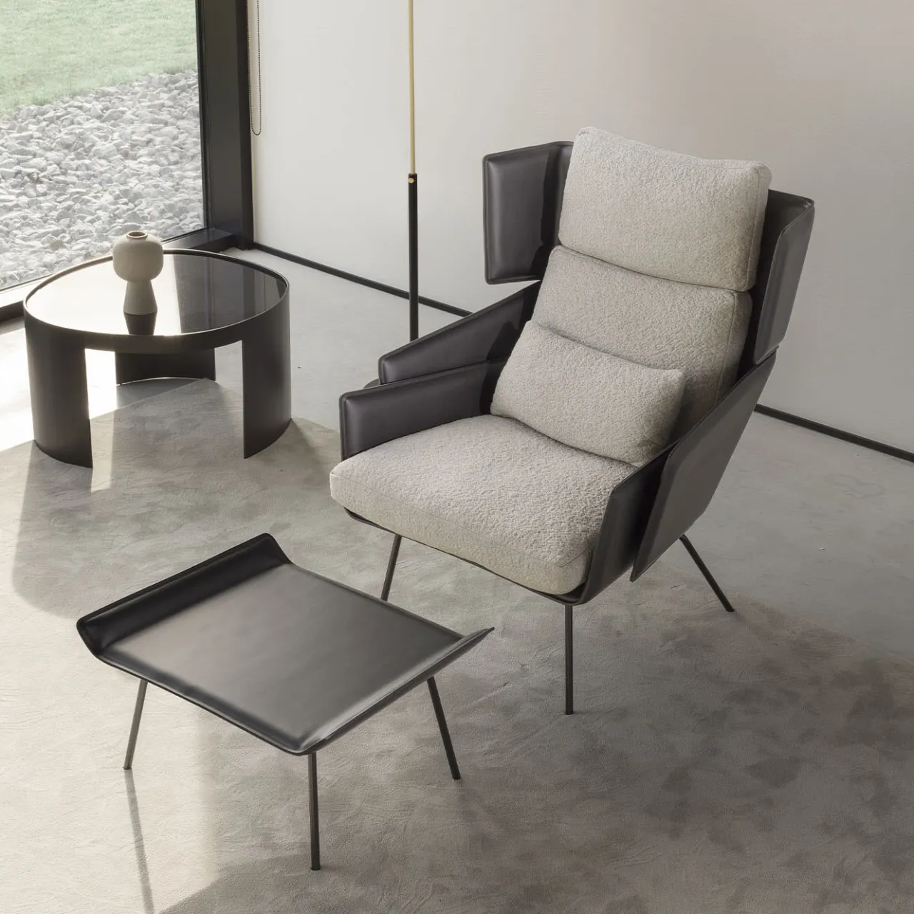 Caratterizzata da un design accattivante e da un’impeccabile lavorazione artigianale, questa poltrona alta in fibra di vetro, rivestita in pelle di lusso, incarna raffinatezza ed eleganza. Con una morbida seduta in schiuma ad alta densità, offre un comfort e uno stile impareggiabili. Disegnato da Palomba Serafini, questo pezzo fonde perfettamente forma e funzione, rendendolo un’aggiunta di spicco a qualsiasi spazio. I cuscini decorativi non sono inclusi nell’acquisto.