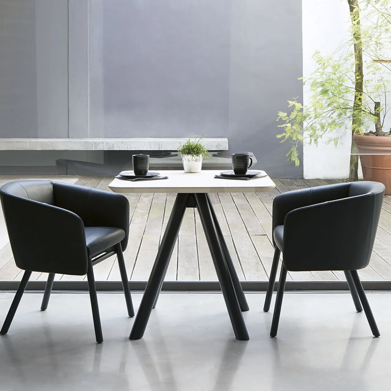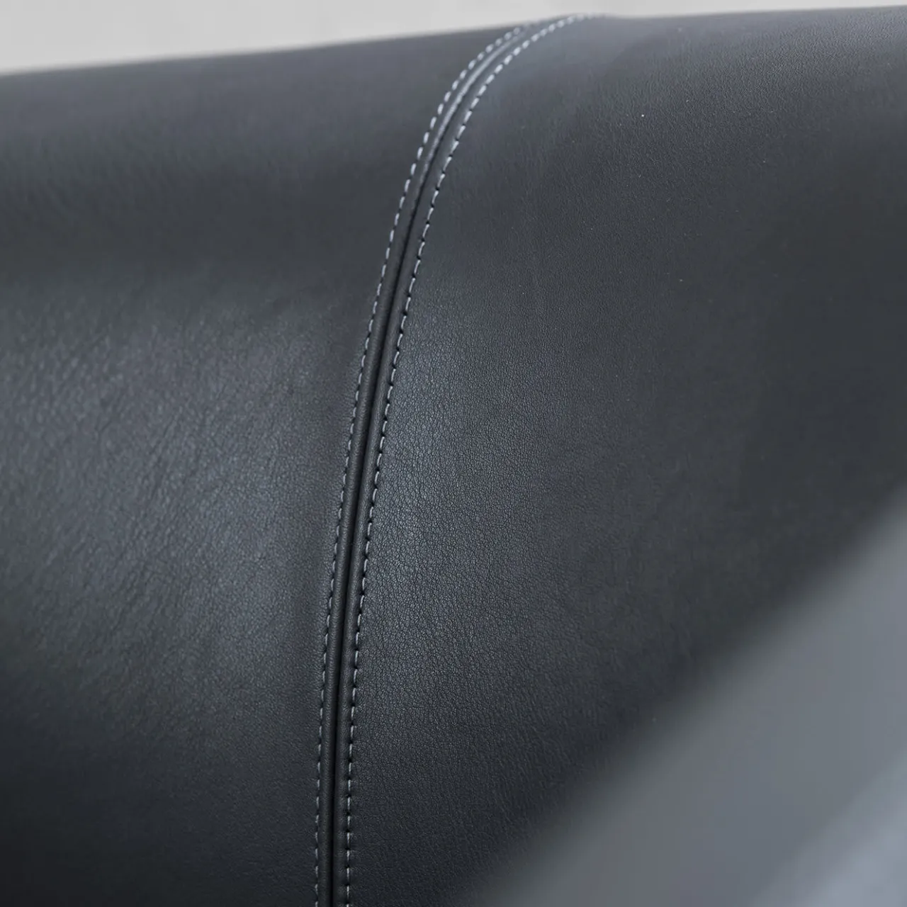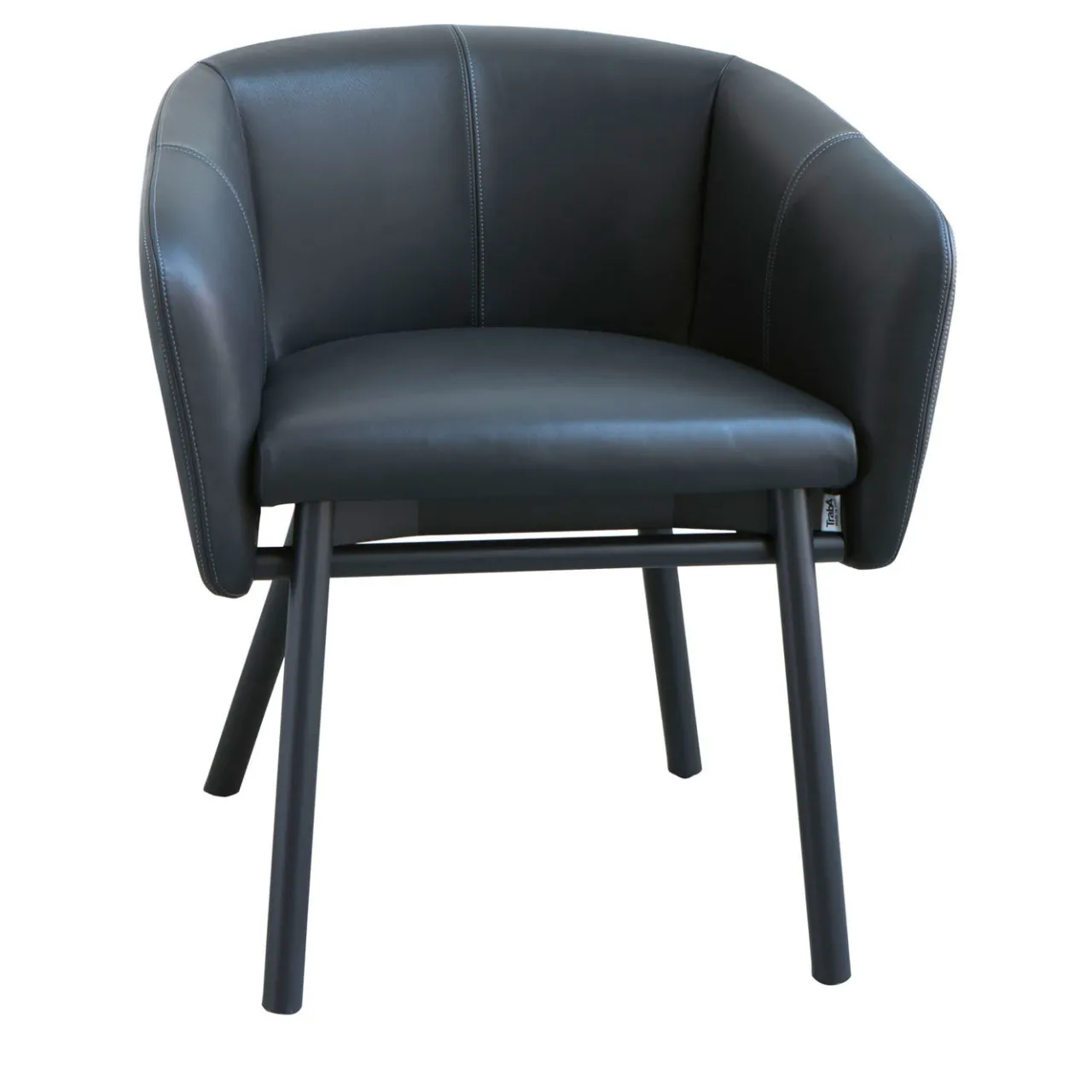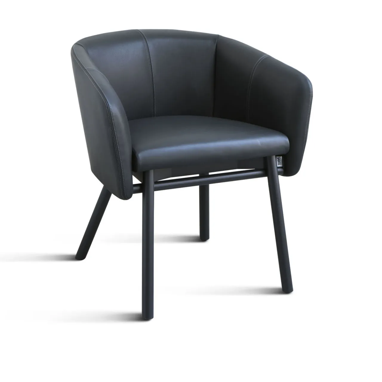 Semplice e sofisticata, questa sedia è un pezzo squisito di arredamento funzionale, che si ispira alla tradizionale sedia da vasca con una silhouette accogliente. Il suo splendido design è caratterizzato da un legno di faggio lucidato nero con gambe inclinate e da una seduta in pelle nera scandita da braccioli avvolgenti e da uno schienale dolcemente curvo. Imbottito in poliuretano e tessuto dacron, questo pezzo è disponibile anche in altre finiture e rivestimenti; contattate il Concierge per le opzioni. Su richiesta, sono disponibili certificazioni per il settore contract e commerciale.
