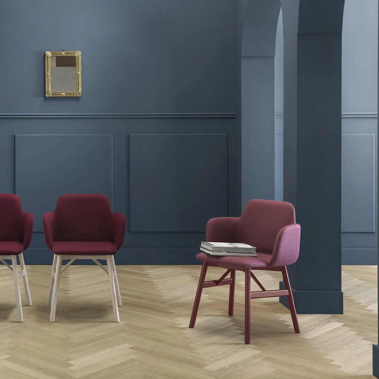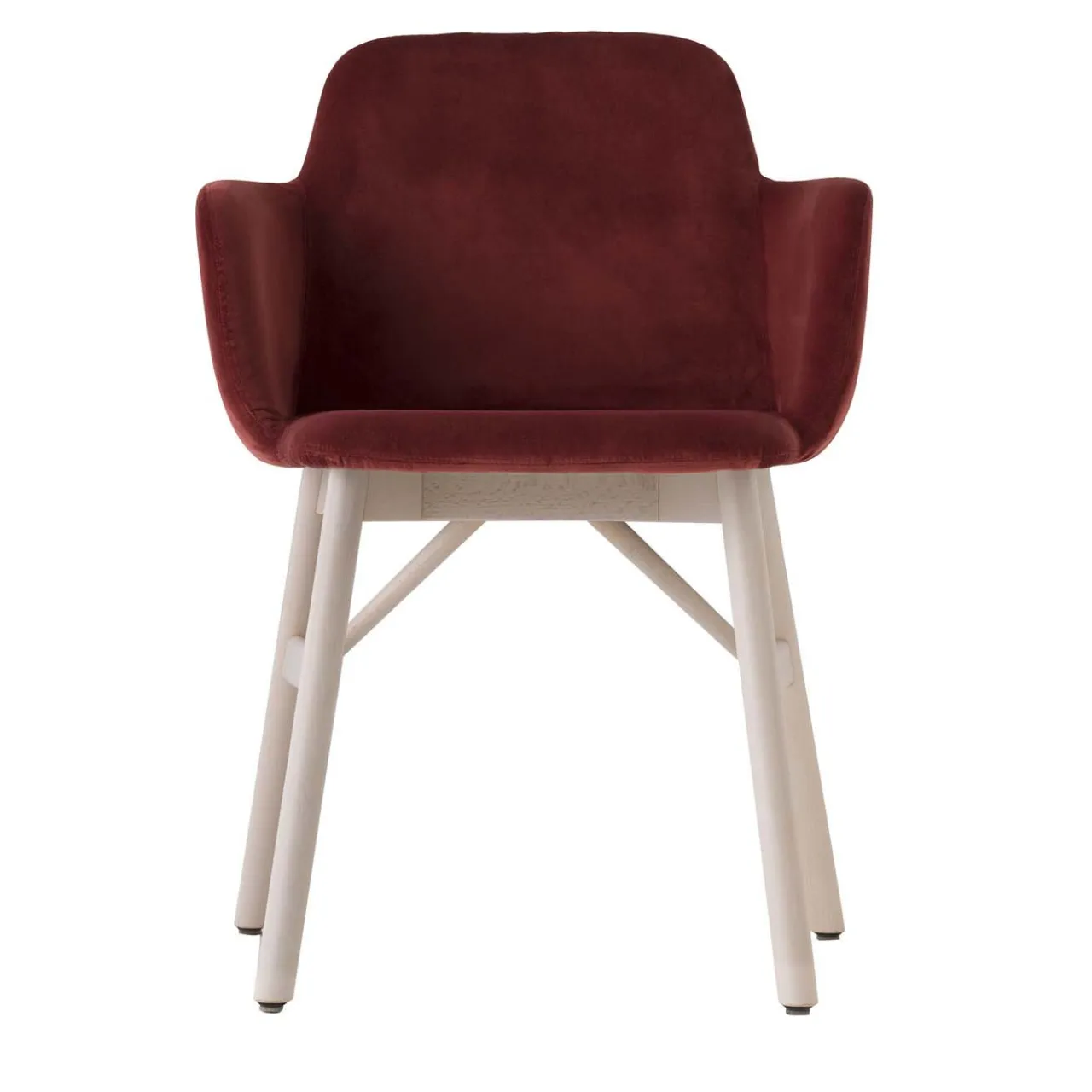 Pezzo forte di una raffinata ricercatezza, questa splendida poltrona emana un’eleganza senza tempo con il suo design ispirato agli anni ’50. Le linee pulite e morbide della silhouette hanno un’elegante influenza nordica, segnata dalle gambe sottili e leggermente inclinate realizzate in faggio sbiancato, che sostengono elegantemente un sedile multistrato imbottito con schienale arrotondato e braccioli rivestiti in velluto rosso bordeaux. Per la personalizzazione del rivestimento, rivolgersi al Concierge.