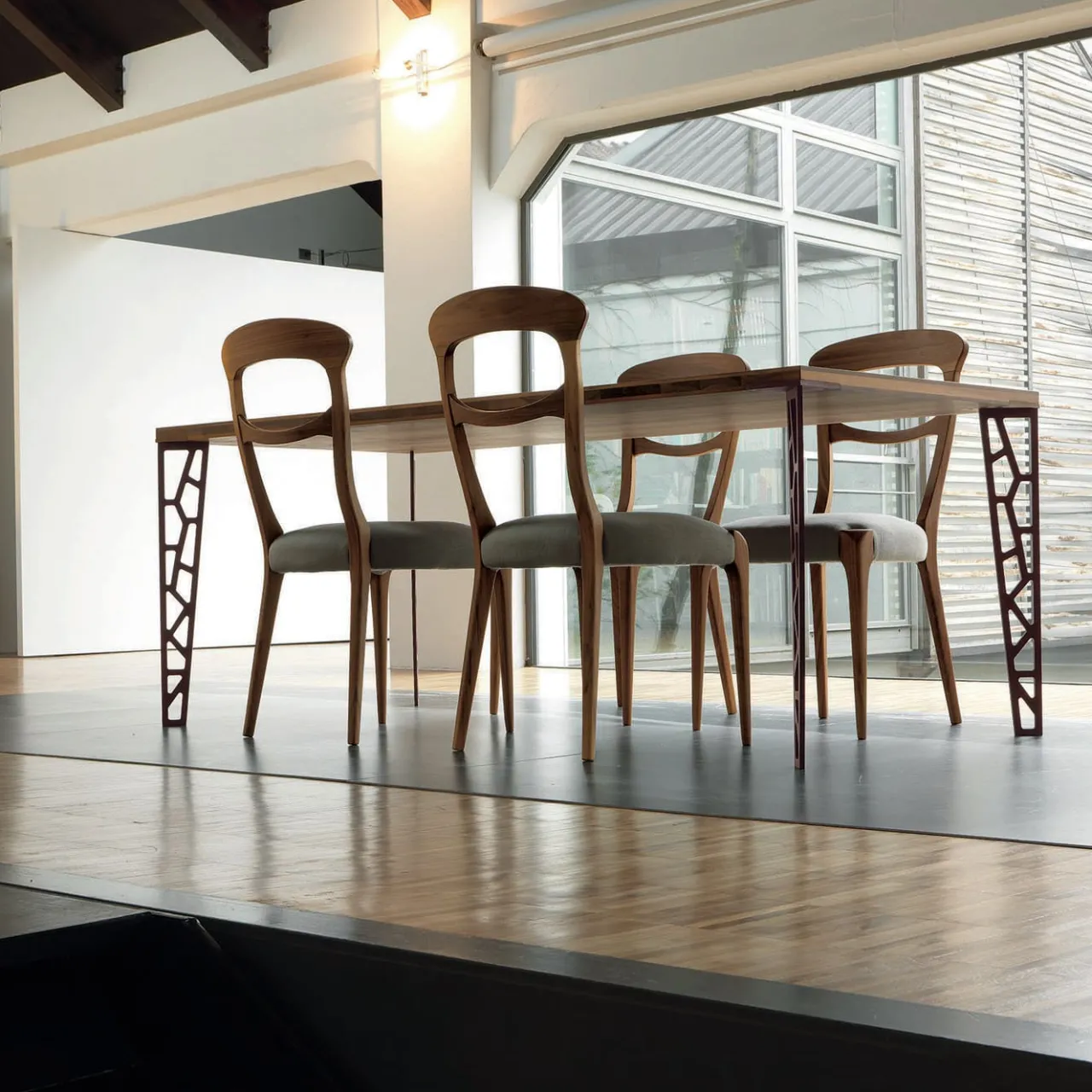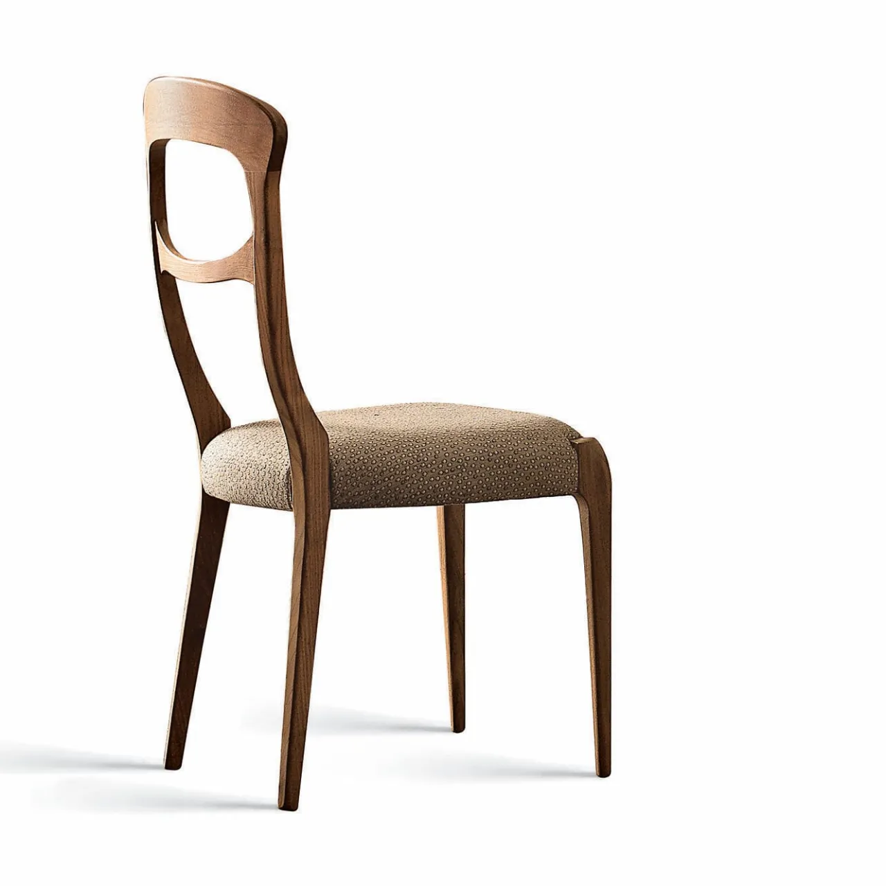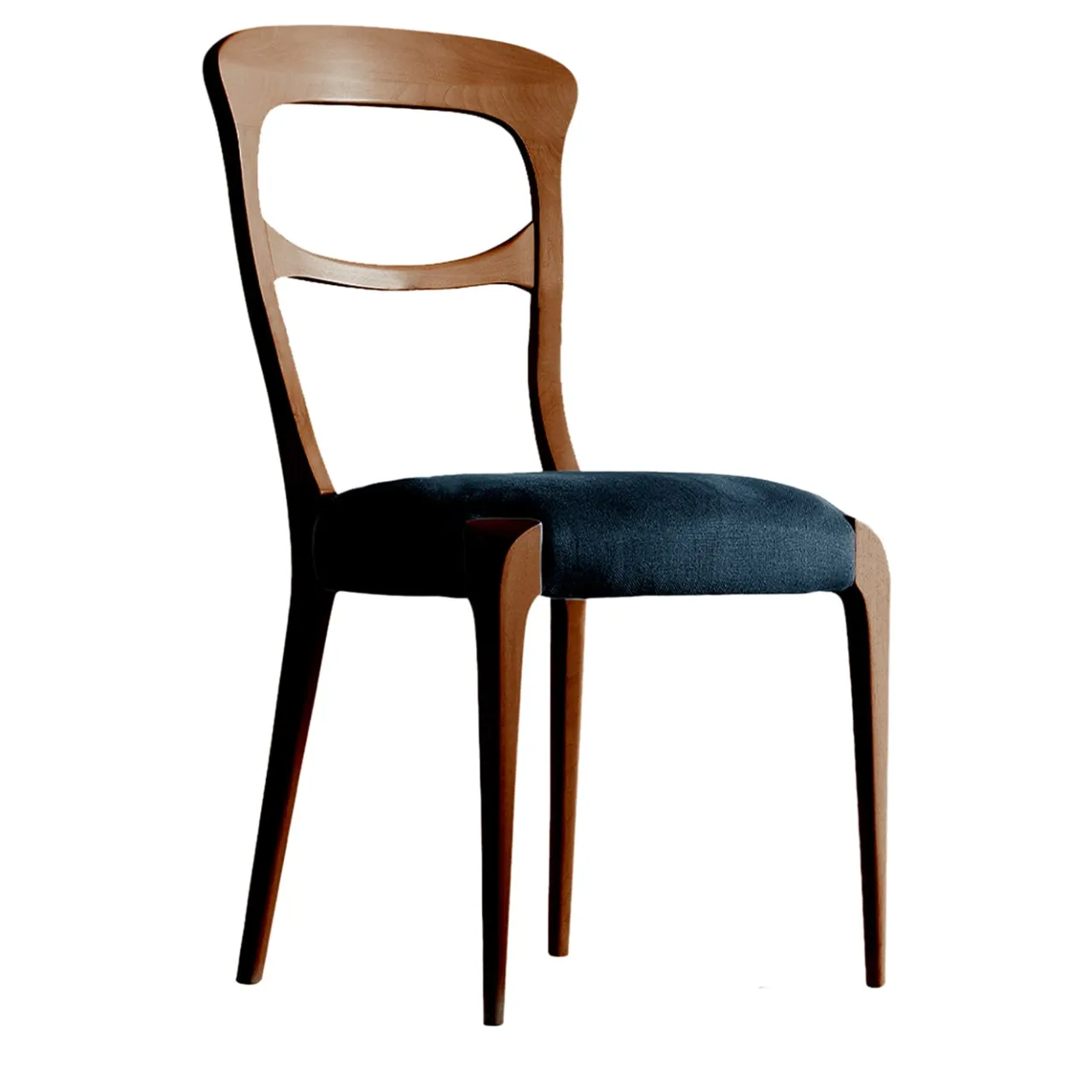 La sedia in legno massello Capotavola incarna la raffinata eleganza del design italiano. Realizzata a mano in Italia, presenta una struttura in massello di noce canaletto con finitura acrilica e rivestimento in pelle o tessuto di prima qualità in una gamma di colori diversi. Disponibile con o senza braccioli e personalizzabile.