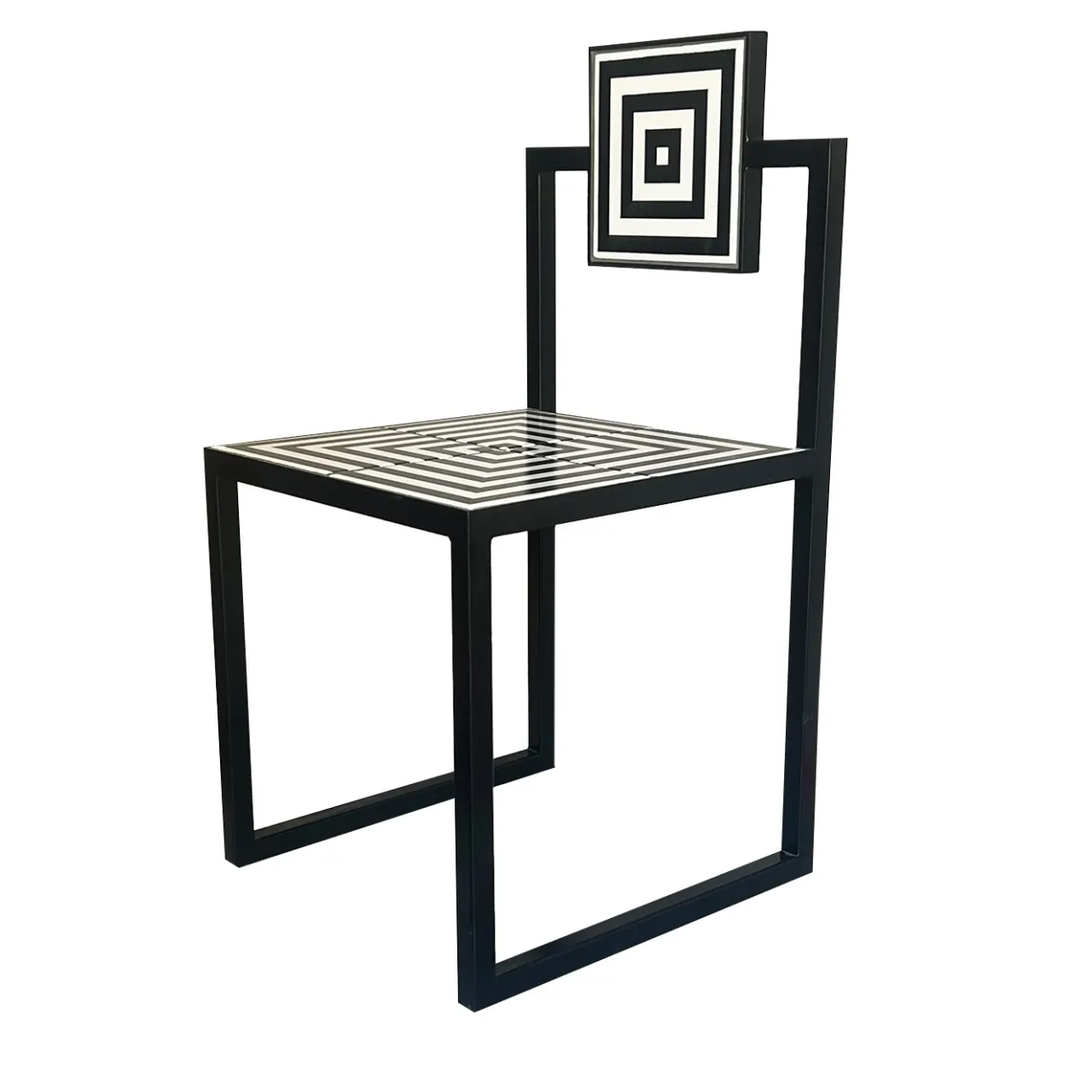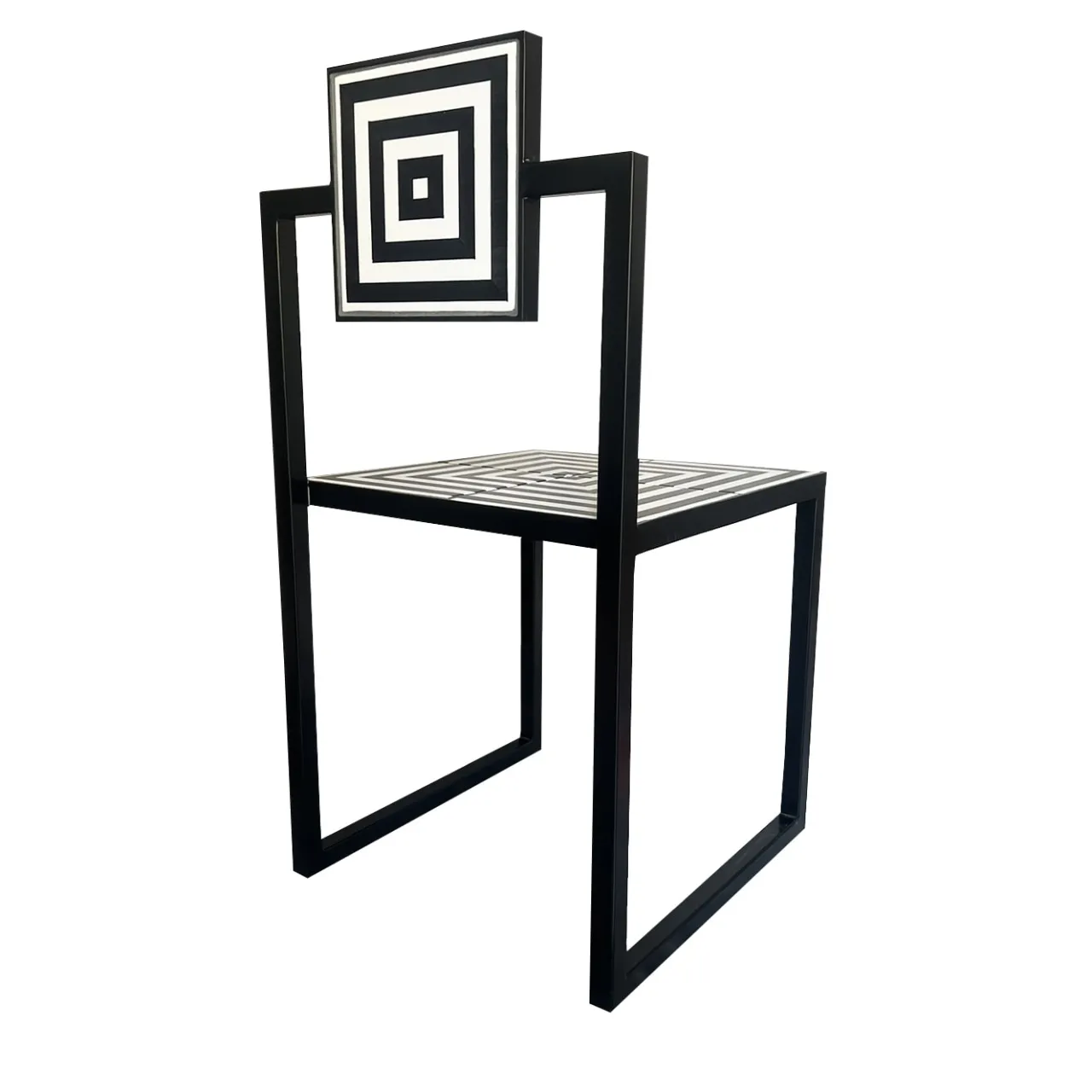 Sedia da esterno Labirinto con piastrelle bianche e nere*Francesco Della Femina