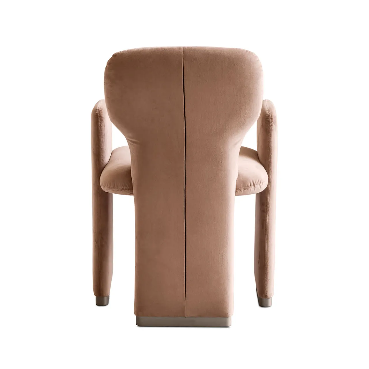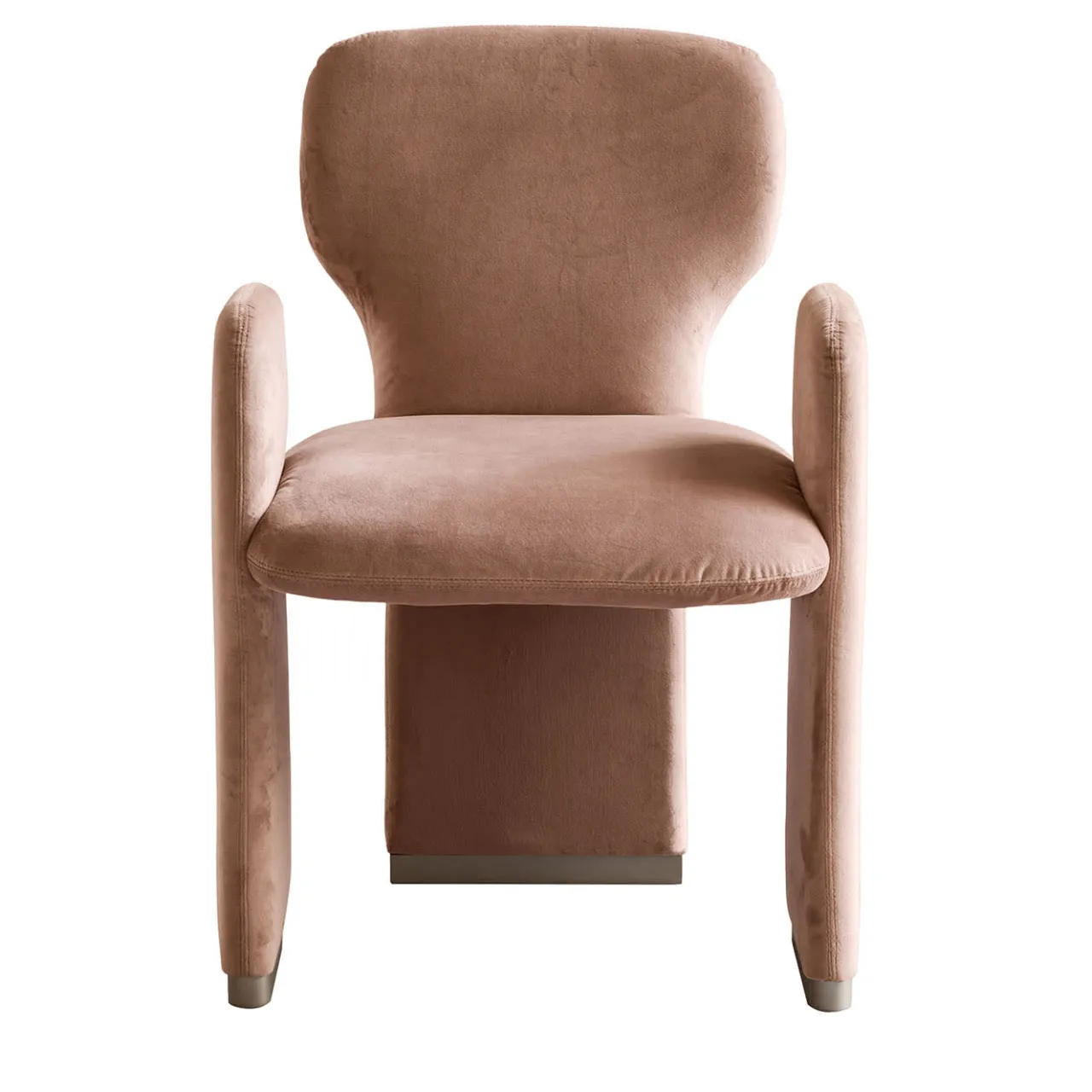 Curve armoniose sostituiscono linee rigorose in questa sofisticata poltrona da pranzo dal fascino scultoreo. Elementi sagomati compongono la sua silhouette ariosa, la cui generosa imbottitura risulta sigillata da un morbido rivestimento in velluto rosa anticato di sottile femminilità. Il comfort è elevato dai braccioli integrati, che contribuiscono alle proporzioni armoniose della struttura.