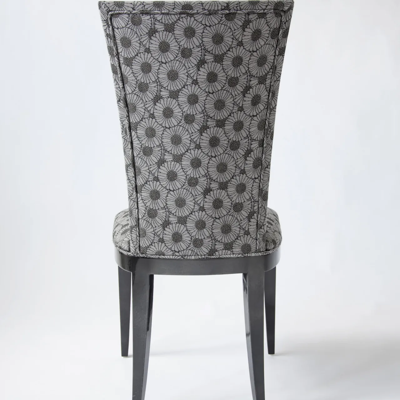 Squisito esempio di seduta di design, la sedia Deco ha una struttura elegante e sofisticata rivestita in pergamena lucida grigio antracite e presenta una seduta e uno schienale imbottiti e rivestiti in tessuto vintage. Il design accattivante si adatta a qualsiasi arredamento moderno o classico della sala da pranzo, del soggiorno o del salotto.