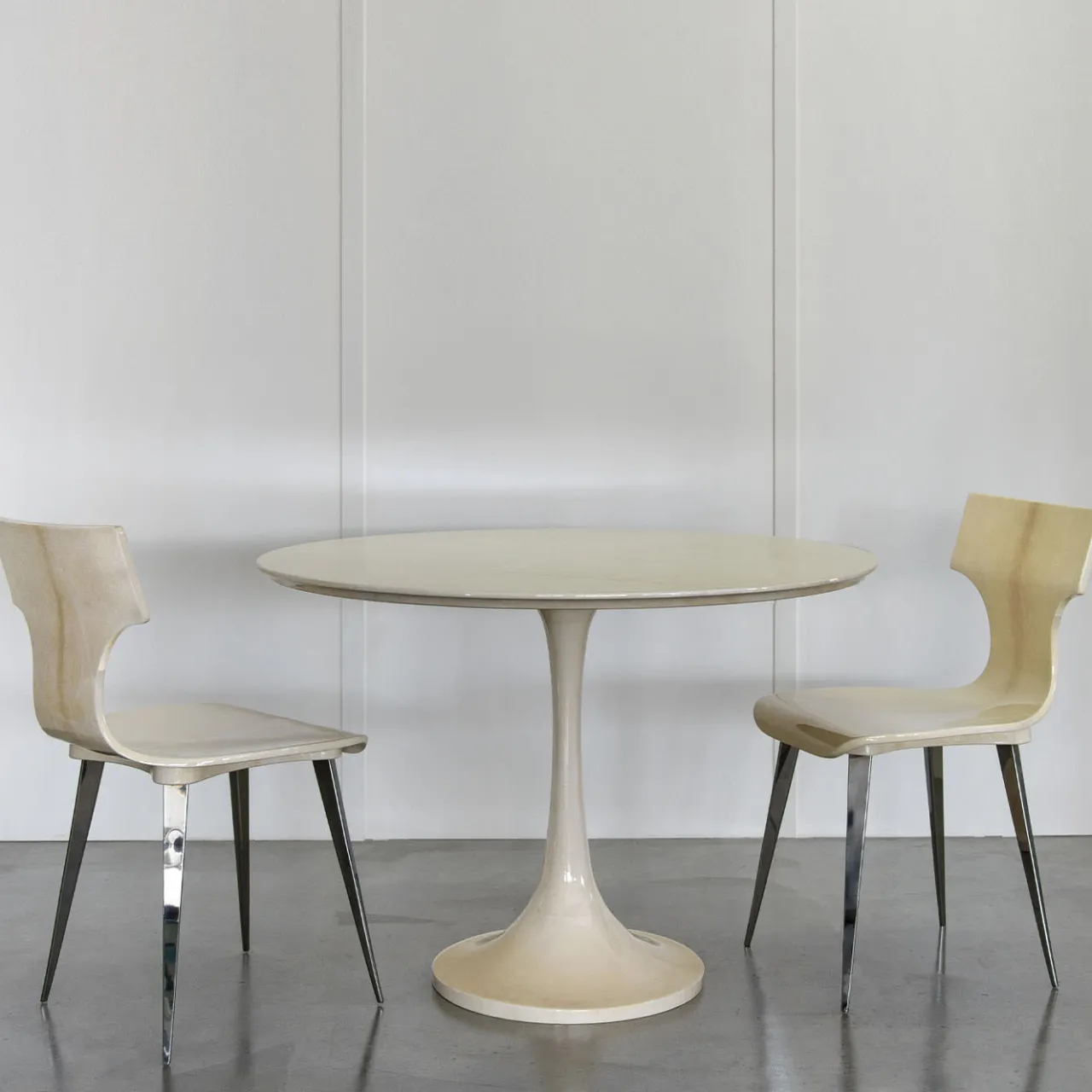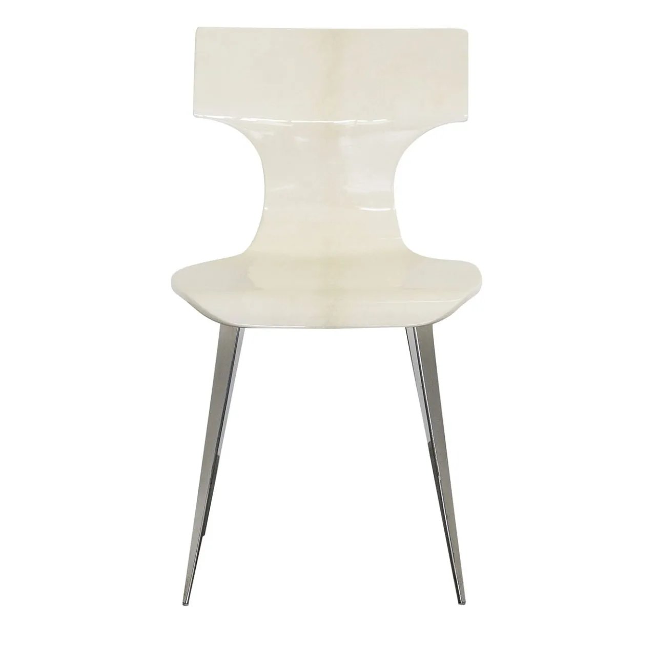 Dinamica e preziosa, questa sedia vanta una scocca robusta e sagomata con un design ergonomico che promette un comfort duraturo. Il suo tratto distintivo è la pregiata pergamena naturale di capra che avvolge completamente la scocca, rifinita da una finitura lucida che esalta ogni dettaglio della sua texture unica. I piedini in acciaio inox extra-lucido completano il design. Ideale l’abbinamento con il tavolo con piedistallo in pelle di capra.