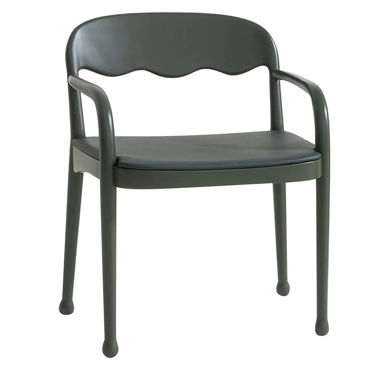 Squisita combinazione di materiali raffinati, questa poltrona verde è realizzata in legno di frassino e presenta un superbo rivestimento in pelle che ricopre la seduta. Un design unico di Cristina Celestino, che si distingue per l’accattivante schienale ondulato e aperto. Su richiesta, il pezzo è disponibile anche con rivestimento in tessuto.