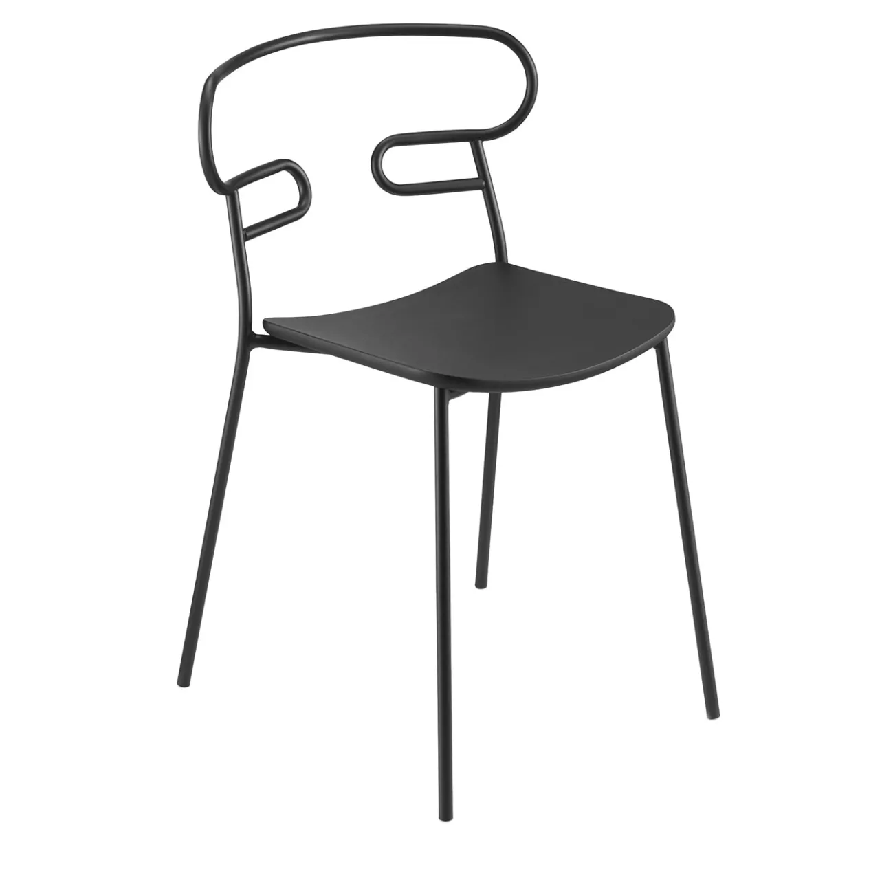 La sedia Genoa Met Pu, design di Cesare Ehr, si distingue per lo schienale realizzato con un unico tubo metallico curvato in una sinuosa forma geometrica. Combinazione di materiali raffinati e resistenti, è composta da una struttura in metallo con finitura laccata nera abbinata a una seduta in legno di frassino nero. Questa sedia è disponibile anche nella versione per esterni, in altre finiture e colori, e con un esclusivo schienale in corda. Si prega di consultare il Concierge per i dettagli.
