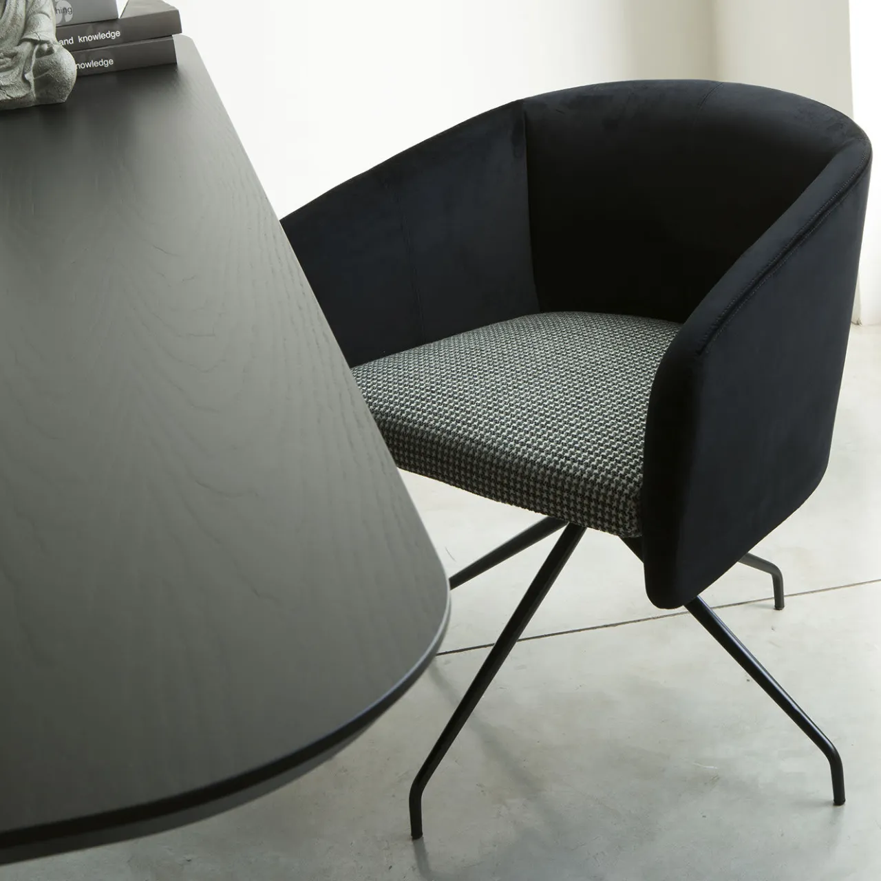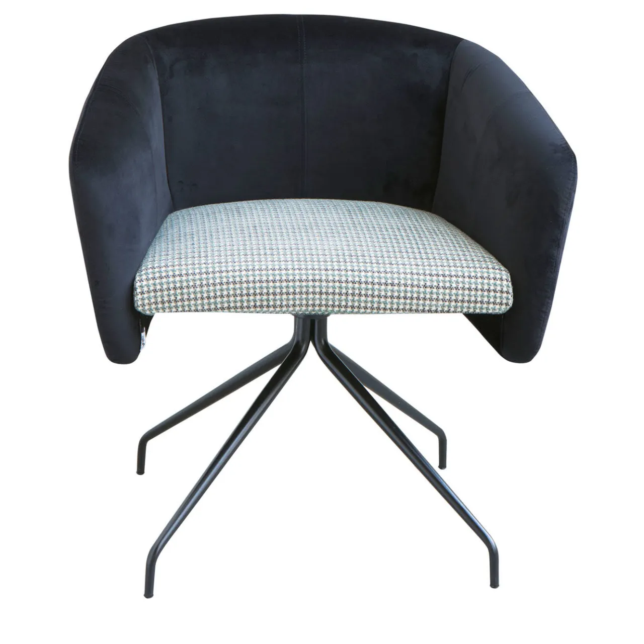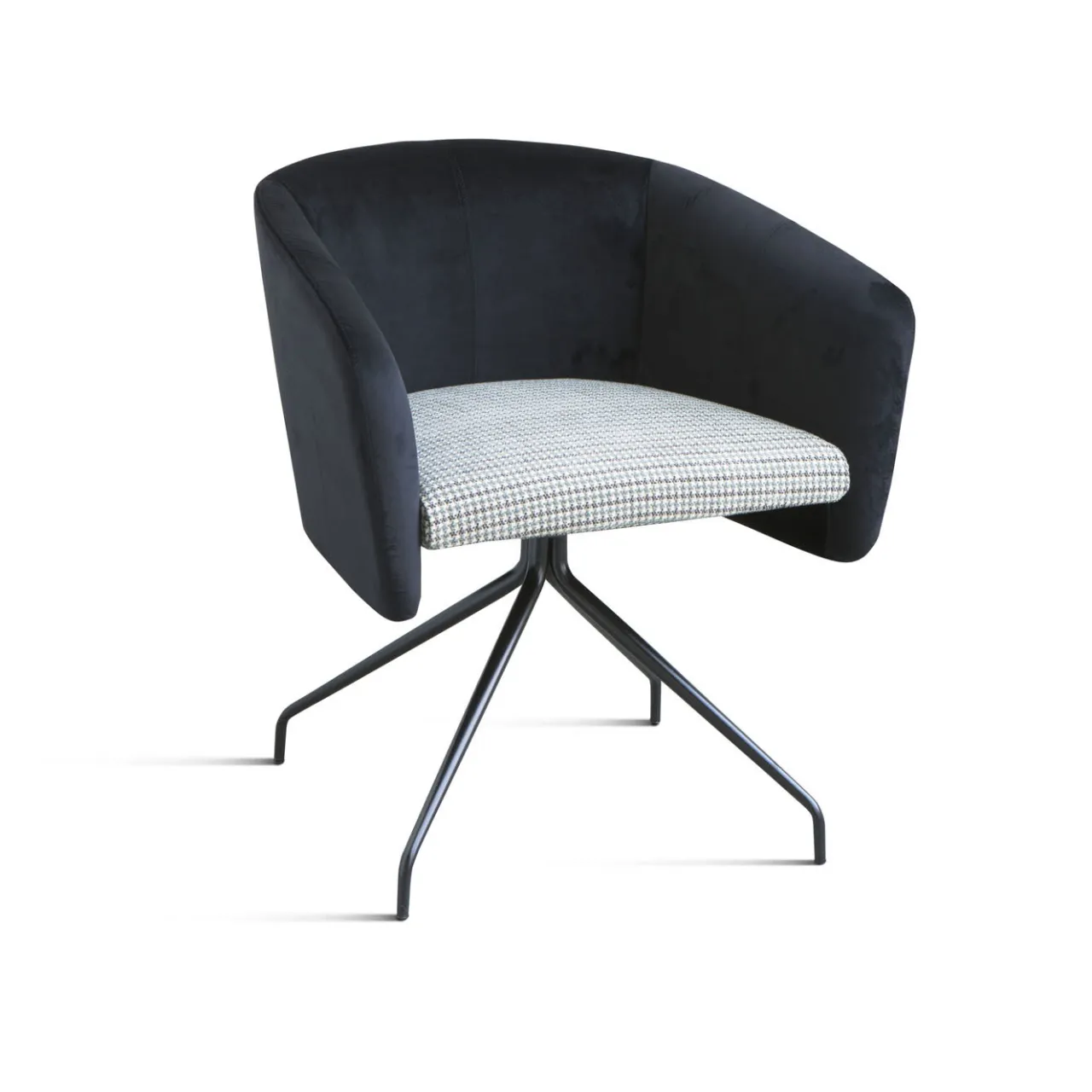 Questa sedia è la versione da ufficio della raffinata collezione Balù disegnata da Emilio Nanni. Elegante e raffinata, presenta una base girevole in metallo a quattro razze e un avvolgente schienale in velluto blu che racchiude una morbida seduta in tessuto imbottita in poliuretano espanso. Questo pezzo è disponibile anche in altre finiture e rivestimenti; chiedete al Concierge per maggiori dettagli.