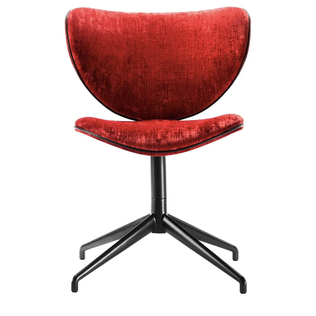 Questa sedia girevole moderna e raffinata sarà l’aggiunta ideale a uno studio moderno o a un ufficio elegante. Questo design, che richiama il fascino dello stile di metà secolo, fa parte della collezione Kalida e presenta una base girevole a 360 gradi sostenuta da gambe in alluminio laccato nero opaco. Il sedile dolcemente curvo e il comodo schienale sono realizzati in multistrato di faggio imbottito con poliuretano espanso ad alta resistenza e rivestito in velluto rosso vivo (non sfoderabile). Su richiesta, sono disponibili le certificazioni per il settore contract e commerciale.