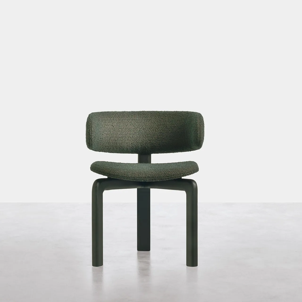 La sedia a tre gambe è un’idea che risale al secolo scorso e che trova in questo progetto una reinterpretazione giocosa e contemporanea. La silhouette avvolgente dello schienale riprende la singolare curva delle gambe e contribuisce all’originalità del design. Struttura in legno massiccio di frassino con finitura nera opaca. Seduta e schienale in compensato curvato imbottito in poliuretano espanso. Sono disponibili altri tessuti e pelli, per maggiori informazioni contattare il concierge.