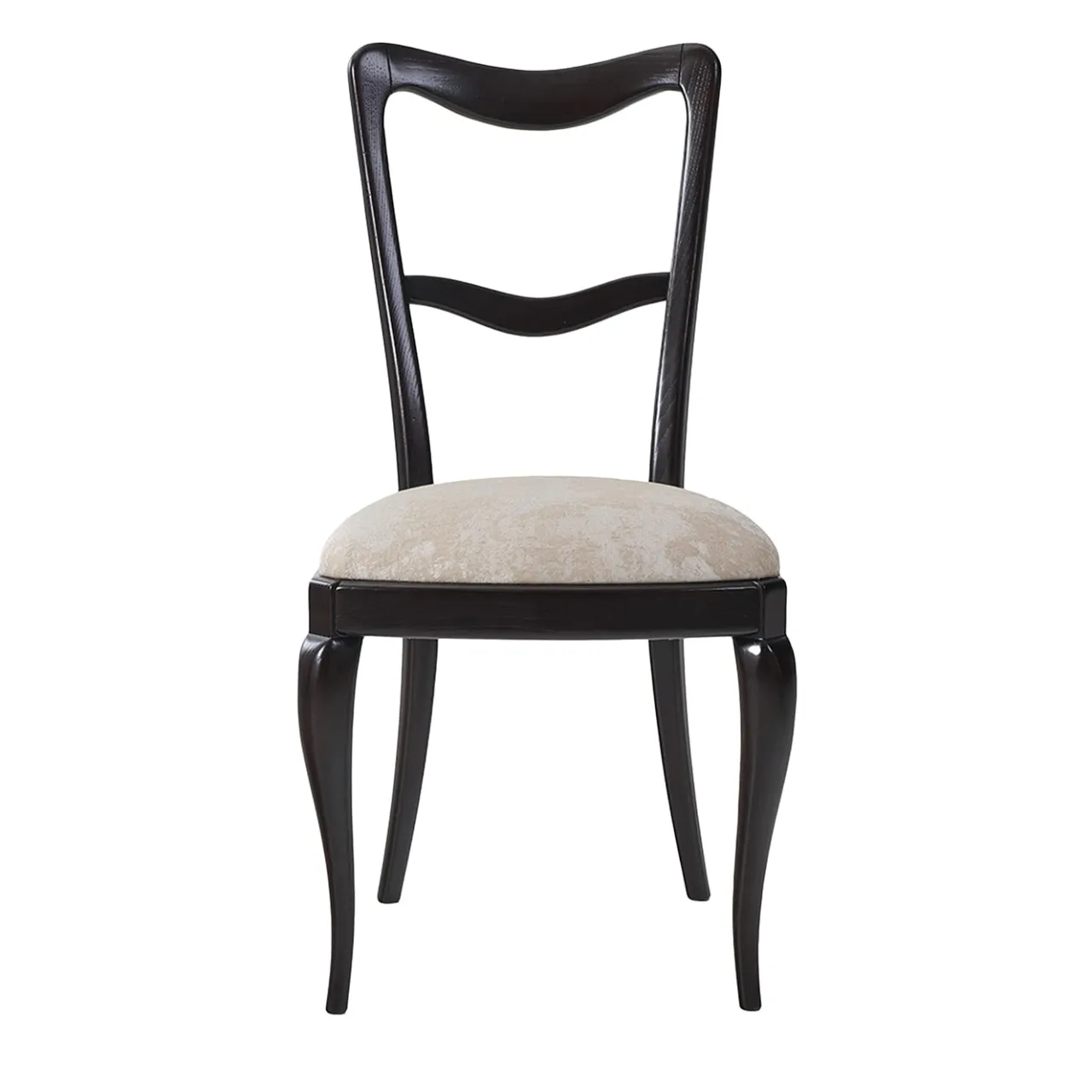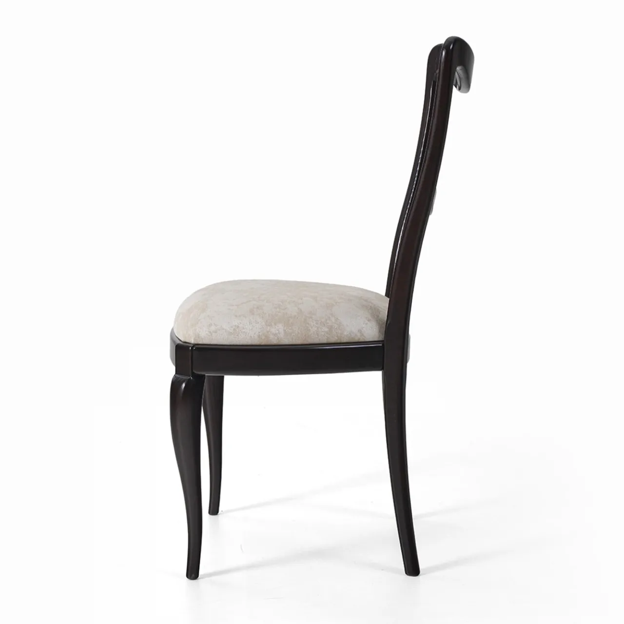 La sedia Babbol affascina con le sue linee sinuose e la ricca tinta ebano. La seduta, rivestita in tessuto, offre un comfort impareggiabile e un tocco di raffinatezza. Perfetta per impreziosire ambienti raffinati e sofisticati.