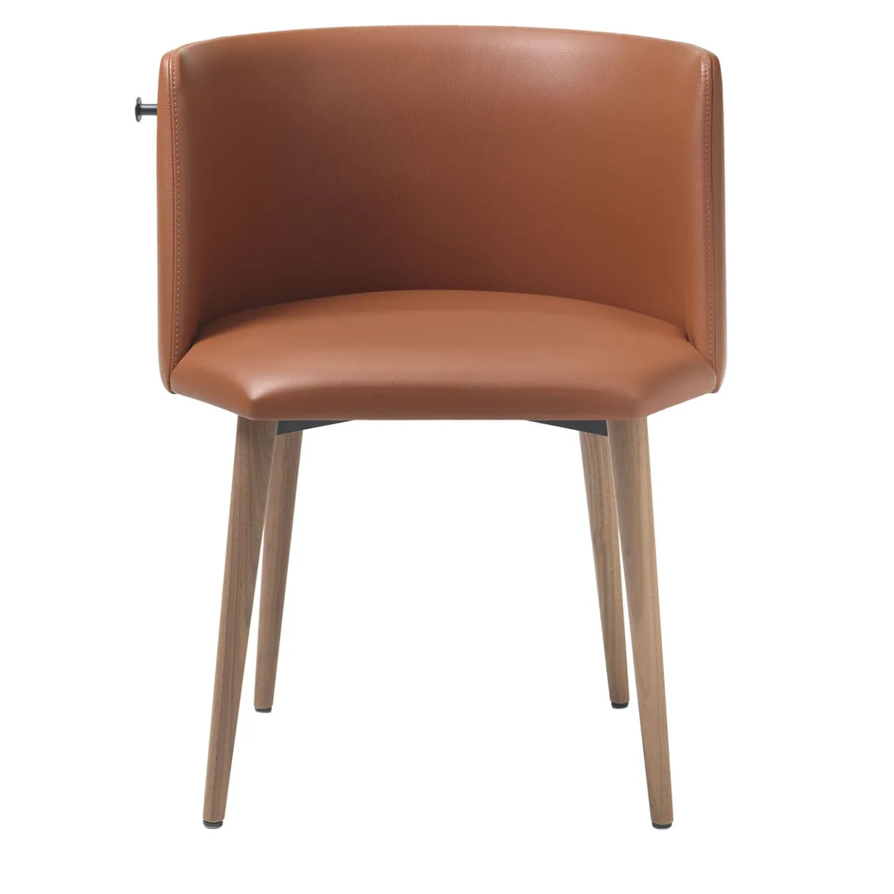La sedia in pelle Pergy presenta uno schienale elegante e curvo e un sedile senza cuciture con rivestimento in extraleather, offrendo comfort e stile moderno. Supportata da quattro gambe slanciate in noce canaletto, la sedia aggiunge calore e stabilità a qualsiasi ambiente. Un pratico gancio per il supporto delle borse è integrato sul lato, migliorandone la funzionalità senza comprometterne l’elegante silhouette. Ideale per vari ambienti interni, questa sedia combina estetica raffinata e praticità quotidiana.
