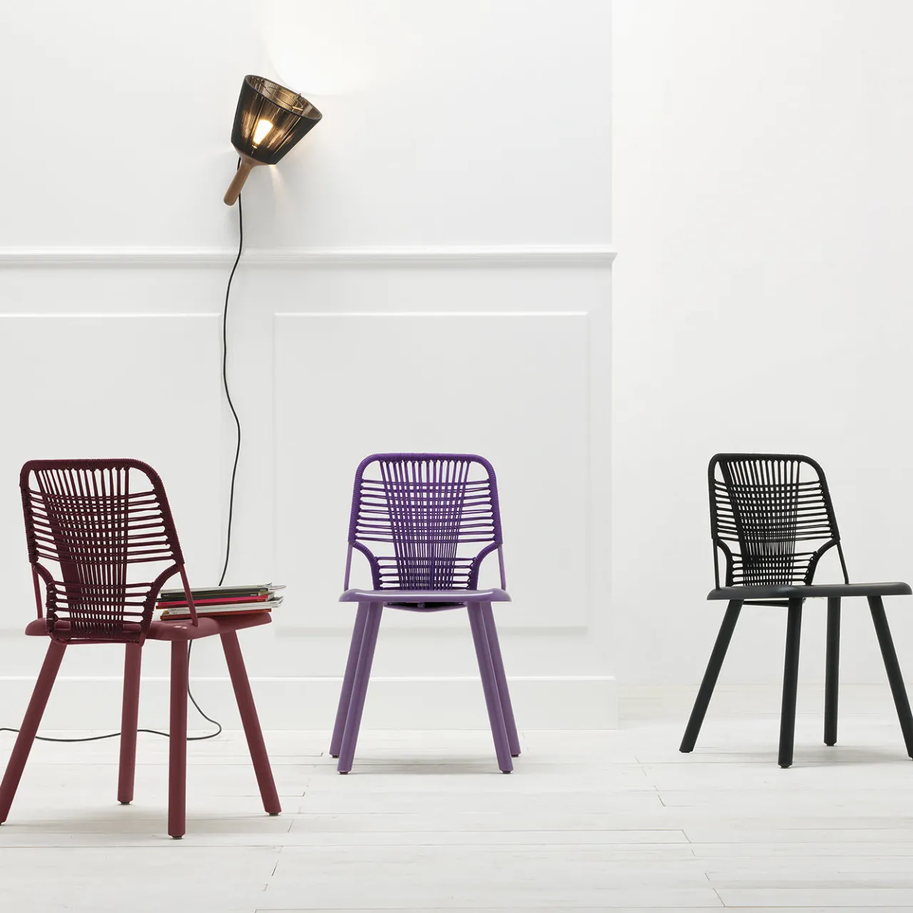 Una straordinaria dimostrazione di maestria artigianale, questa squisita sedia è un pezzo scultoreo disegnato da Emilio Nanni che vanta una silhouette contemporanea e accattivante esaltata da un look total black. Poggiata su una solida struttura in frassino con gambe sottili e inclinate, l’elemento distintivo di questo pezzo è il sedile posteriore caratterizzato da un magistrale disegno intrecciato in tondino di metallo e corda nera. Questo design è disponibile in altre finiture e colori; per maggiori dettagli, contattare il Concierge.