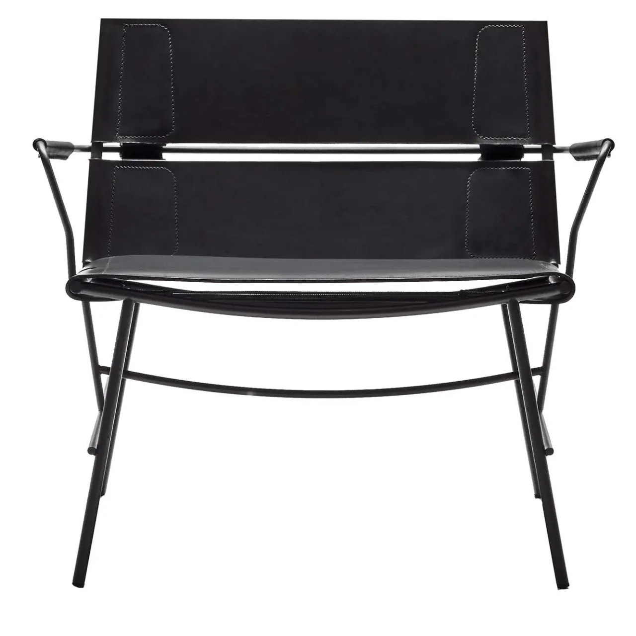 Pezzo di squisita eleganza moderna, questa poltrona lounge vanta un’estetica total black. Adatta a un ambiente interno, ravviva l’aspetto di qualsiasi stanza, soprattutto se abbinata ad altre della stessa serie. Rivestita in pelle pieno fiore nera (anche rossa, muschio, gialla e naturale) e dotata di cinghie tecniche, lo schienale e la seduta (altezza 40,5 cm) poggiano su una struttura in acciaio dalle linee pulite ed essenziali. Contattare il Concierge per le opzioni di personalizzazione.