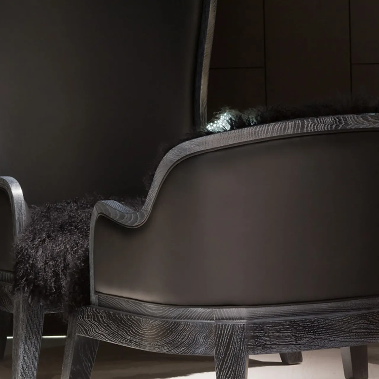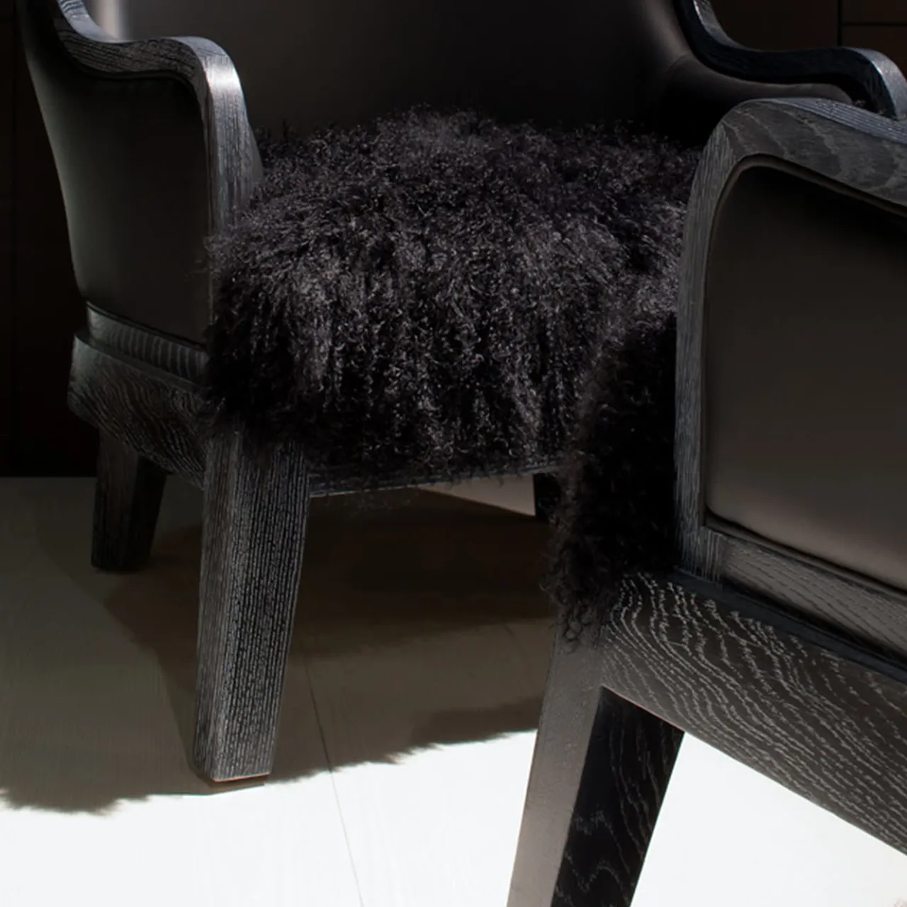 Madama: un’epitome di comfort e stile moderno. Il suo tratto distintivo è lo schienale sagomato incorniciato da un profilo fluente in rovere nero, che mette in mostra l’arte della lavorazione del legno. L’esclusivo rivestimento in pelle aggiunge un tocco di raffinatezza, mentre la seduta è impreziosita da un’eccentrica pelliccia di agnello tibetano nero per una sensazione di morbidezza e lusso. Elevate il vostro spazio con questa fusione di design elegante e texture opulente: un pezzo perfetto che unisce perfettamente comfort ed estetica chic.