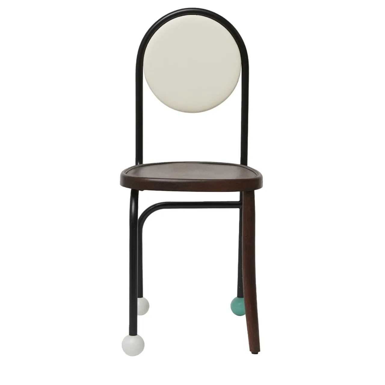 Disegni classici in legno di fine Ottocento reinterpretati attualizzando i trattini e i punti tipici del linguaggio Morse caratterizzano questa sedia della collezione Morse Clash. Scultorea nella sua estetica policroma ed eclettica che accoppia legno e acciaio a piedi sferici rifiniti in azzurro e bianco, viene proposta in altre versioni disponibili nel catalogo Artemest.