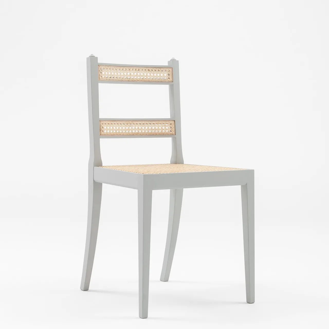 Un meraviglioso design di estrema semplicità, questa sedia vanta linee pulite ed eleganti che si ispirano alle antiche sedie del Nord Europa. Realizzata a mano in legno di faggio rifinito in una tonalità grigio chiaro, presenta un sofisticato schienale aperto composto da due fasce in paglia di Vienna, in tinta con il materiale della seduta. Disponibile in altri colori, consultare il catalogo Artemest per le opzioni.