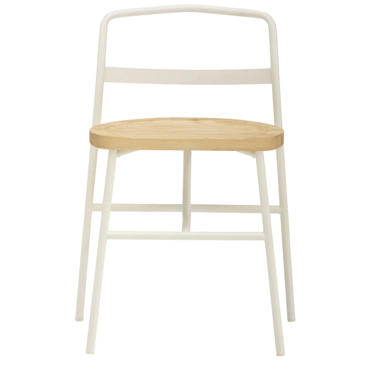 Luminosa e ariosa, questa sedia di Emilio Nanni sfoggia un design armonioso in cui l’eleganza e l’affidabilità di una struttura in tubolare metallico laccato in bianco sporco (Rag 9016) incontra l’autentica unicità di una seduta in frassino naturale. Il suo taglio ergonomico favorisce un comfort duraturo, enfatizzato dagli elementi essenziali dello schienale che offrono sostegno alla schiena. Sono disponibili altre opzioni di colore.
