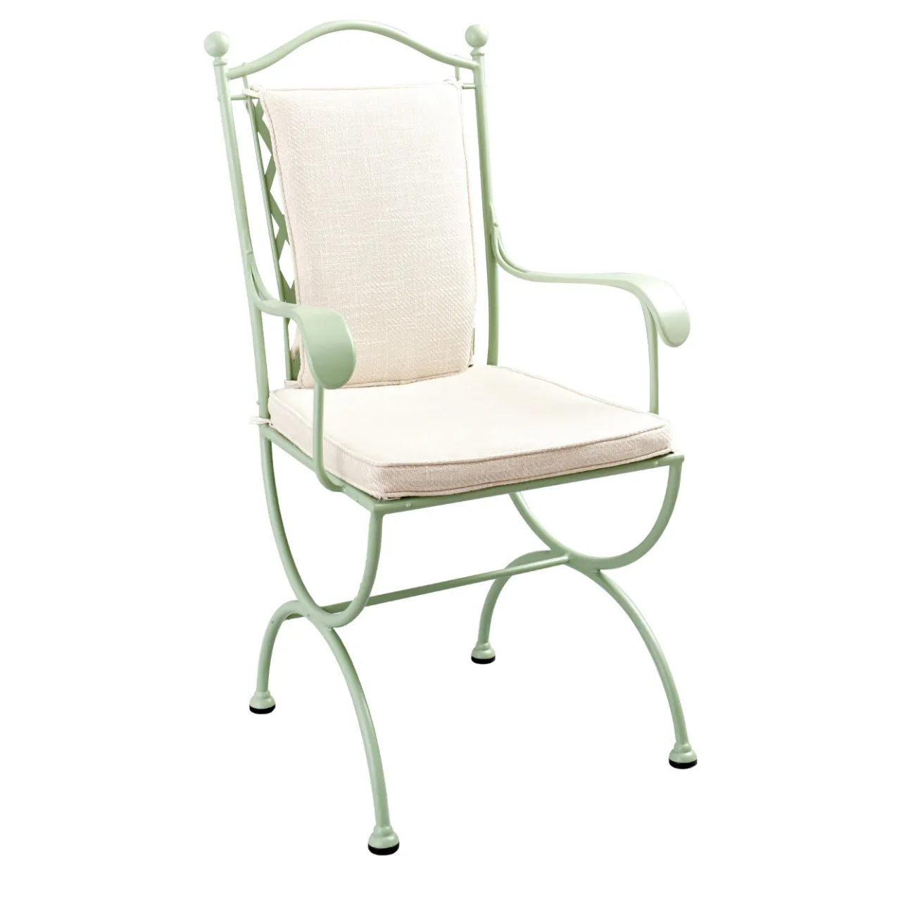 Con le sue linee morbide e sinuose, questa sedia in acciaio inox battuto, zincato e verniciato a polvere in verde chiaro, sarà l’aggiunta perfetta al vostro tavolo da giardino. Il suo look retrò di ispirazione vintage è modernizzato dalla semplicità minimalista delle curve. Il morbido cuscino bianco imbottito e rivestito in tessuto è incluso.