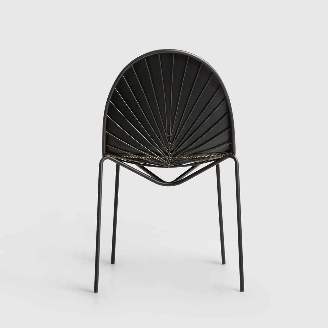 Questa sedia fa parte di una serie di sedute e schienali caratterizzati da uno splendido disegno a raggiera realizzato con tondini d’acciaio tubolari. Adatta anche agli ambienti interni, è completata da un cuscino in tessuto sfoderabile per interni ed esterni, imbottito con schiuma Dry-Fly morbida e resistente all’acqua, fissato alla struttura con un magnete. Per le opzioni di personalizzazione, consultare il Concierge.