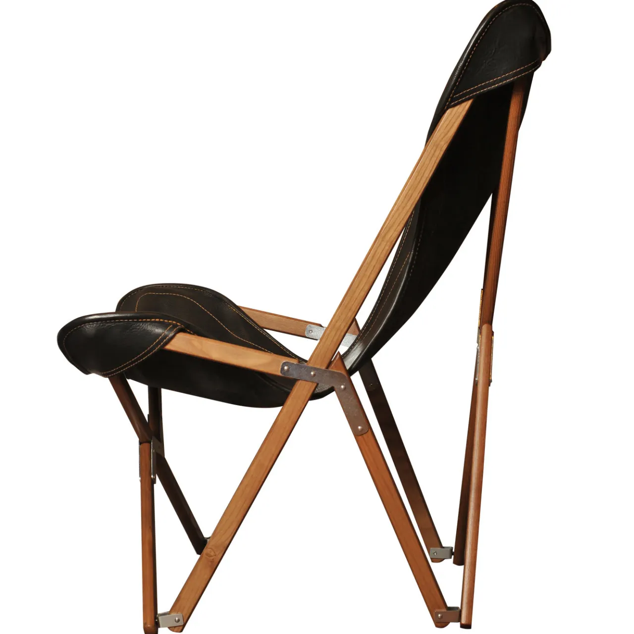 Questa sedia si basa sui prototipi di sedili pieghevoli creati nel XIX secolo da J.B. Fenby, che a sua volta si era ispirato alle tradizionali sedie berbere. La Tripolina è una sedia resistente realizzata a mano a Roma da Dario Alfonsi, caratterizzata da una spessa pelle bottolata conciata al vegetale, cucita a mano con fili sintetici e di cotone. Questa versione è realizzata in pelle conciata nera e legno massiccio di teak.