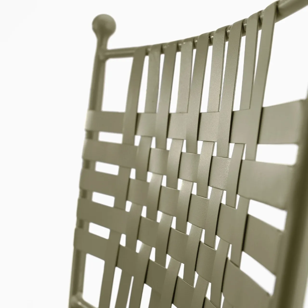 Leggera e fresca nella sua struttura in metallo zincato tundra, questa sedia è un’aggiunta ideale alle terrazze in stile contemporaneo. Caratterizzata da un design a strisce intrecciate ortogonalmente, lo schienale aperto assicura un sostegno ottimizzato, per un livello di comfort che risulta massimizzato dal cuscino verde-toner – rivestito in tessuto Agave T402 – che completa la seduta in rete. La verniciatura finale a polvere ne migliora la resistenza agli agenti atmosferici. Contattare il Concierge per le varianti di colore.