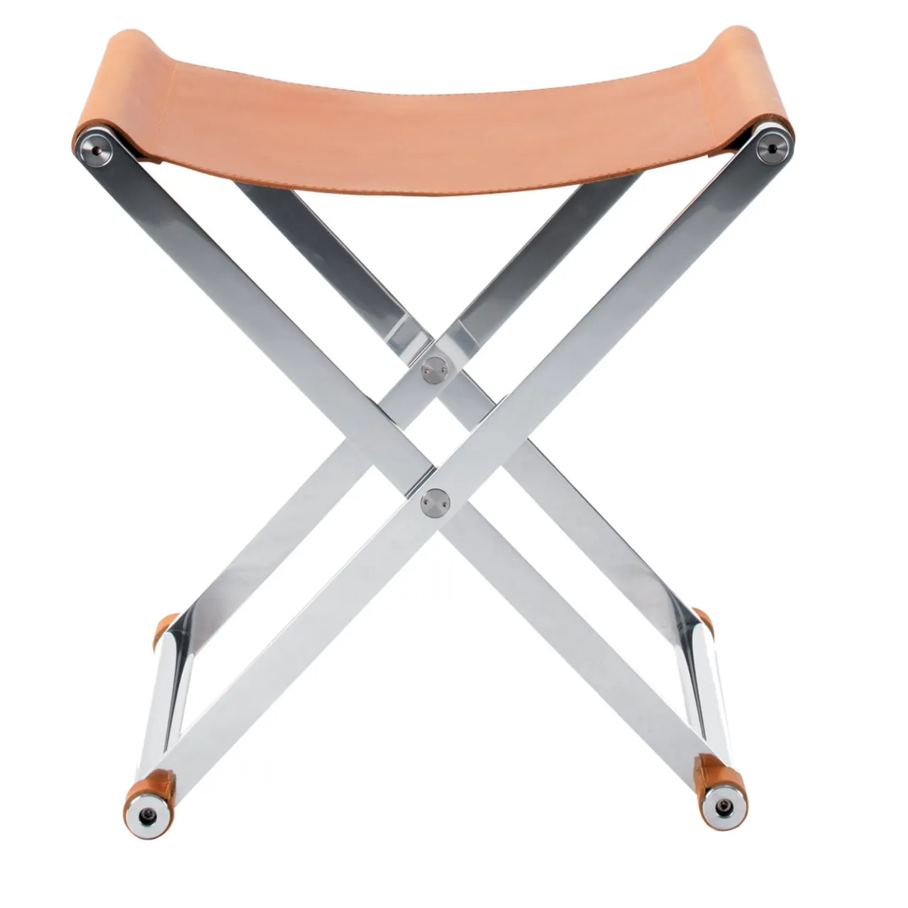 Un pezzo di pelle naturale pieno fiore sospeso da una solida base in alluminio, tenuta insieme da acciaio inossidabile, crea questa sedia semplice ma sofisticata. La sua pieghevolezza la rende perfetta per essere riposta facilmente. La sua leggerezza e il rivestimento in pelle cucito a mano sui piedi della sedia garantiscono una portabilità silenziosa. Disponibile su richiesta in pelle pieno fiore o in tessuto.