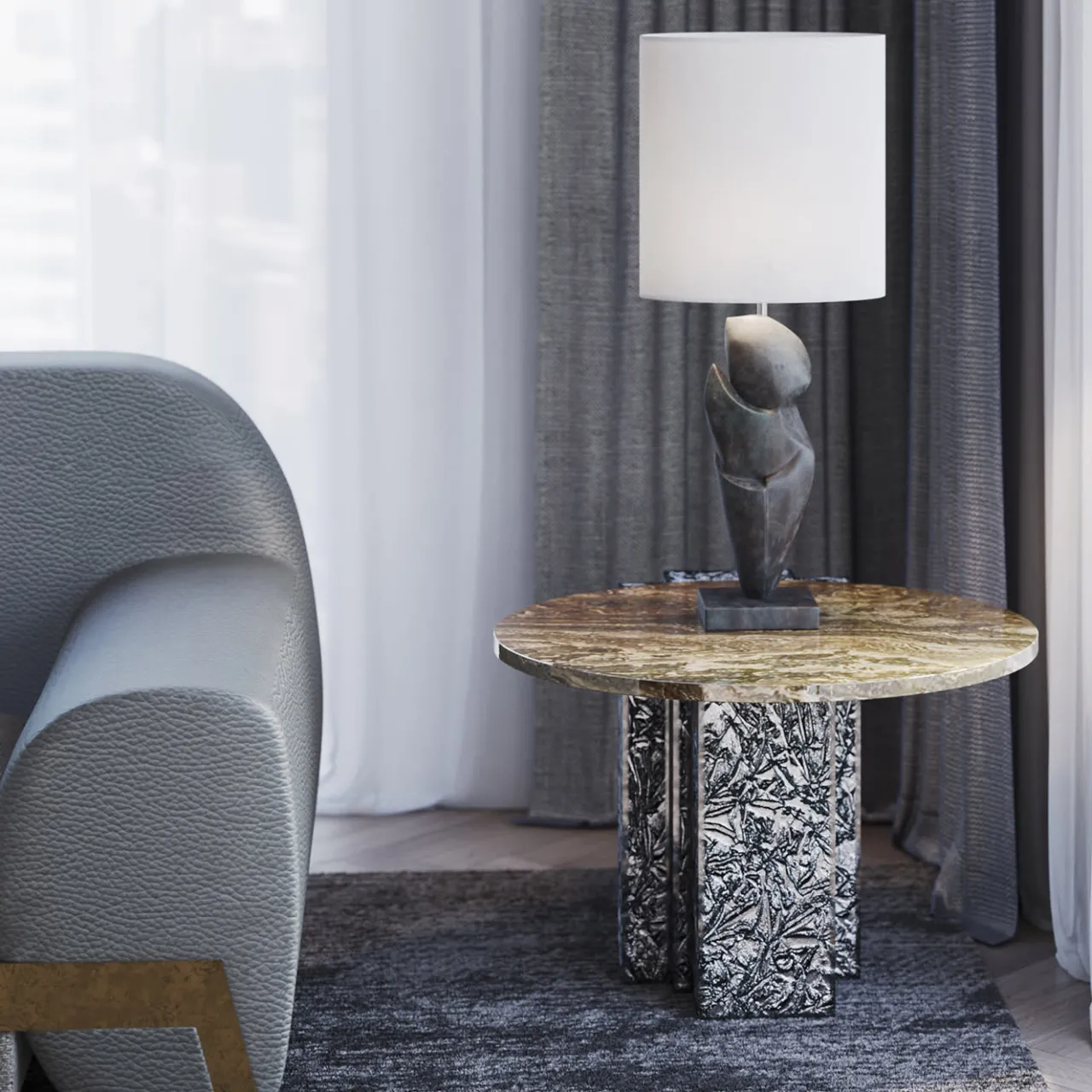 La semplicità delle linee e la ricchezza dei materiali rappresentano un approccio complesso. I tavoli Liam, disegnati da Paolo Ciacci, possono essere combinati per creare piani d’appoggio più ampi e composizioni variabili ma di grande impatto, grazie al gioco di volumi aperti e chiusi reso possibile dalla loro struttura a ponte. Piano e piedistallo in marmo Eramosa con finitura a liquido. Disponibile anche in altre dimensioni, contattare il Concierge per maggiori dettagli.