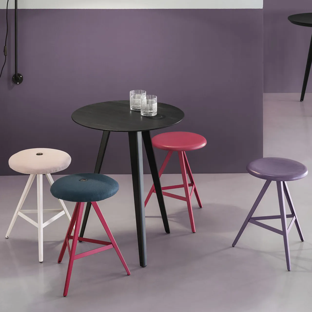 Pratico e funzionale, questo sgabello disegnato da Emilio Nanni completerà in modo ideale gli spazi contract o residenziali se accostato ad altri di colori diversi. Caratterizzato da una tonalità rosa cipria che abbina la struttura in metallo alla seduta in frassino massiccio rivestita in tessuto (finitura: cat. D Camira Era CSE19), poggia su un accattivante treppiede arricchito da elementi orizzontali che fungono da poggiapiedi. Personalizzabile nel colore su richiesta.