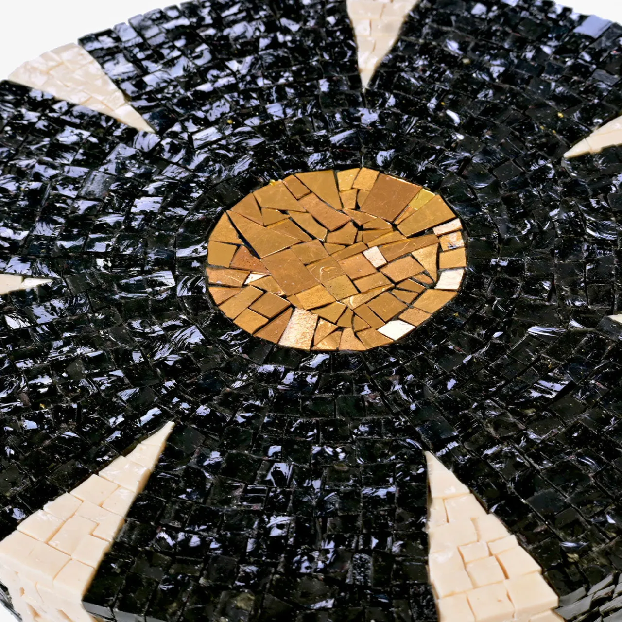 Un design feroce e maestoso che sarà un audace punto focale in un interno contemporaneo, questo sgabello scultoreo si ispira ai motivi degli sgabelli dei leoni del circo e al leone alato dell’iconica Piazza San Marco a Venezia. Abilmente realizzato a mano con 7000 tessere di mosaico in nero, beige e oro 24 carati tagliate a mano presso la fornace Orsoni di Venezia.