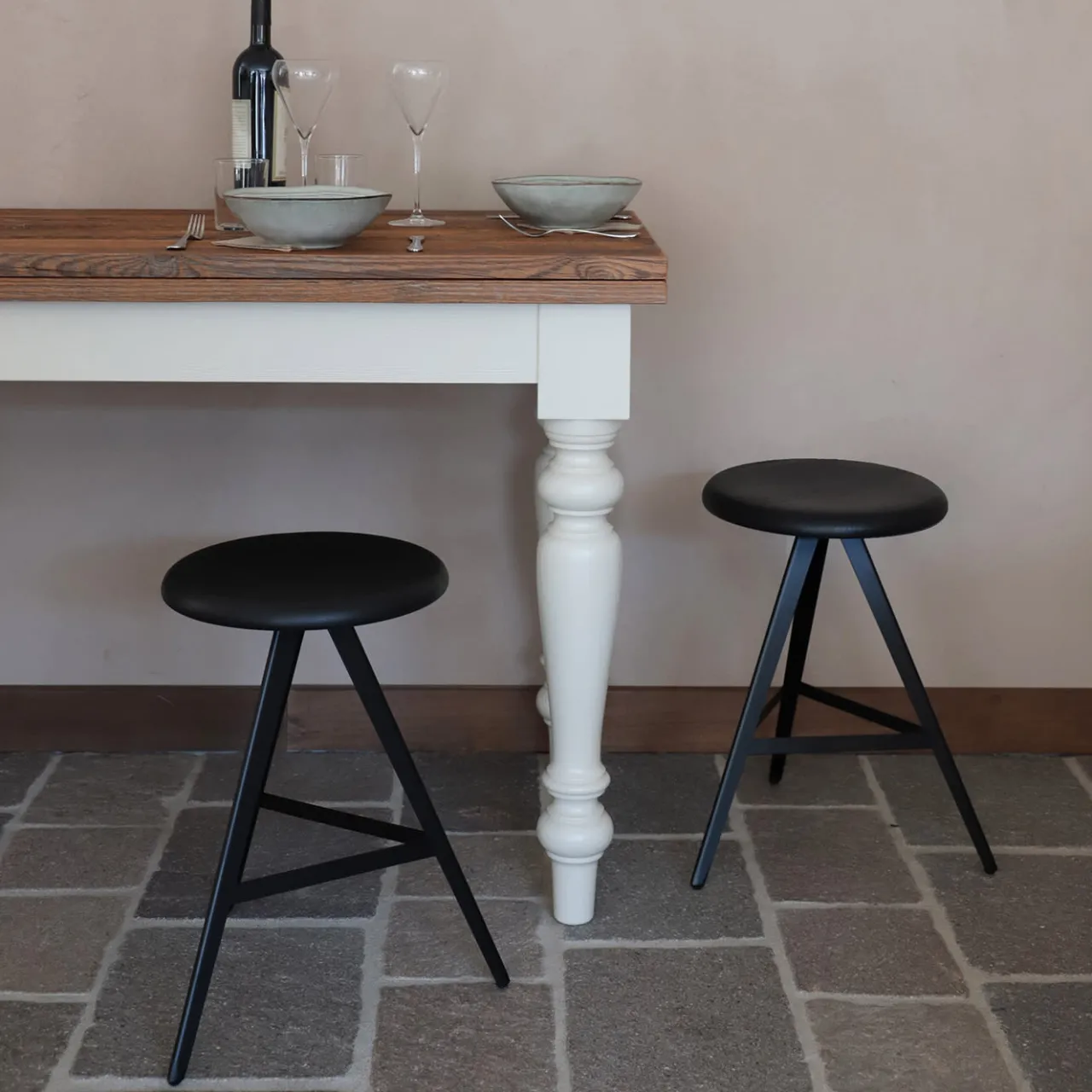 Questo sgabello basso di Emilio Nanni è una perfetta combinazione di praticità e funzionalità. Il suo look total black lo rende un complemento elegante per un’ampia varietà di spazi commerciali e contract. Lo sgabello è caratterizzato da un sedile circolare in frassino alto 61 cm che sostiene un’elegante struttura in metallo con tre gambe oblique dotate di poggiapiedi. Nel catalogo Artemest sono disponibili diverse versioni.