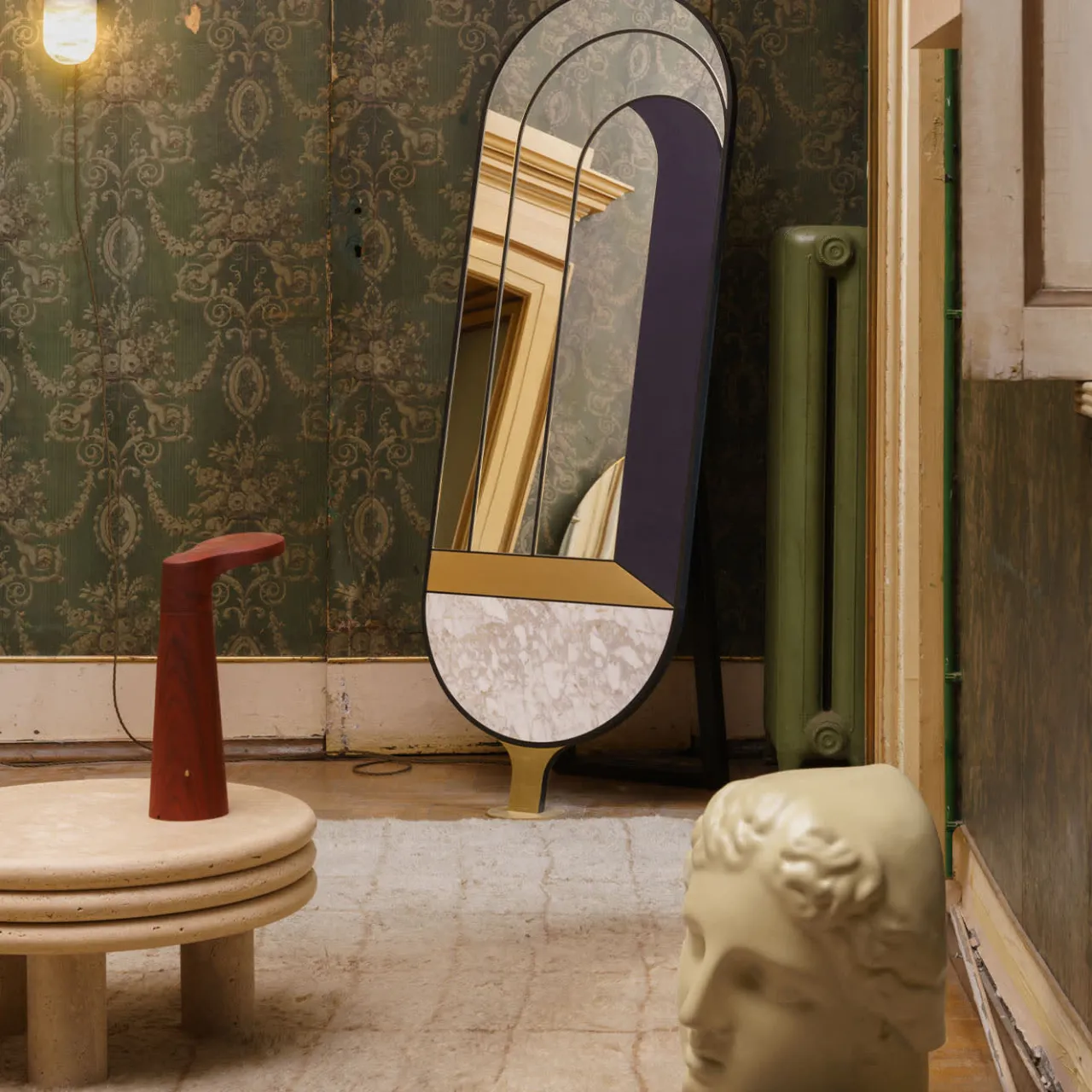 Questo sgabello antropomorfo ha la forma di un misterioso busto femminile, la cui forma classica ammorbidisce l’aspetto industriale del materiale in cemento. Può essere abbinato ad altri oggetti della linea, disegnata da Marialaura Rossiello Studio Irvine. Il suo colore crema tenue ne accresce l’enigmatica misticità.