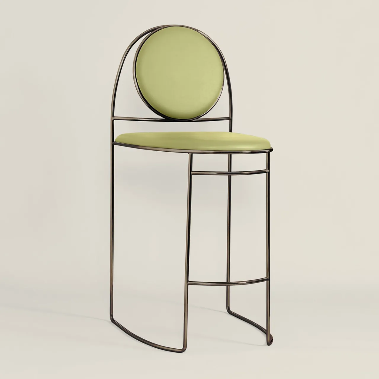 Nella Collezione Ducale, Enrico Girotti rende omaggio alla città di Venezia reinterpretando elementi del gotico veneziano. Un percorso palingenetico che fonde design e artigianato attraverso il metallo e i tessuti. Lo sgabello Ducale-BZ presenta uno schienale disegnato nello spazio con curve bezier, con uno schienale circolare sostenuto da un elemento curvo. La struttura è in acciaio massiccio sagomato, frontale aperto, con finitura cromata e rivestimento in ecopelle. Contattare il Concierge per le opzioni di personalizzazione.
