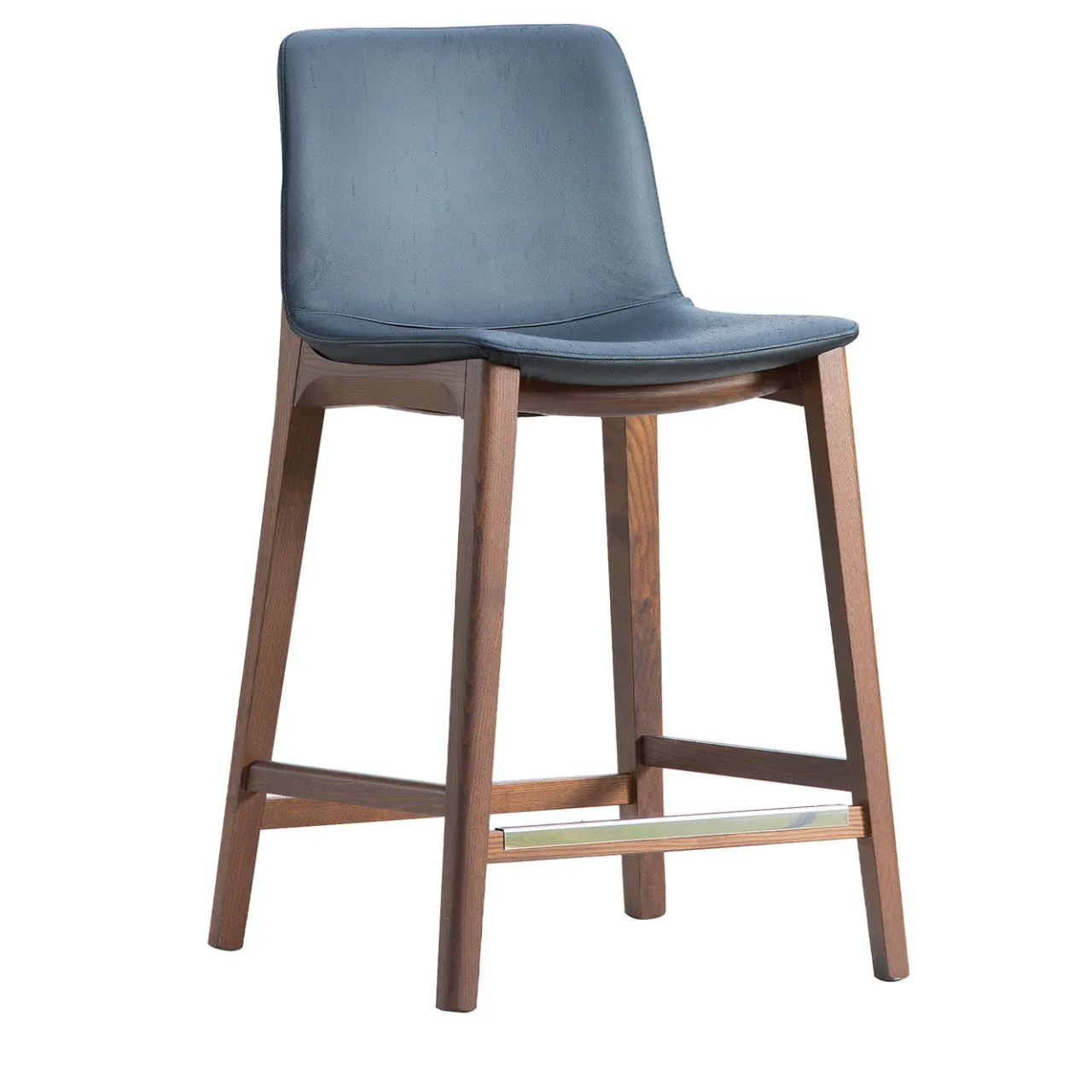 Aggiungete un elemento di stile a qualsiasi bar o bancone da colazione di casa con questo sgabello che poggia su sottili gambe in legno massiccio di frassino, qui presentato in tinta noce medio e disponibile anche in rovere sbiancato, rovere termotrattato, rovere scuro, noce scuro, noce Canaletto e nero. La seduta a guscio è rivestita in morbida pelle nera, che può essere personalizzata su richiesta in altri colori, oltre che in ecopelle, tessuto tecnico e similpelle Rebel.