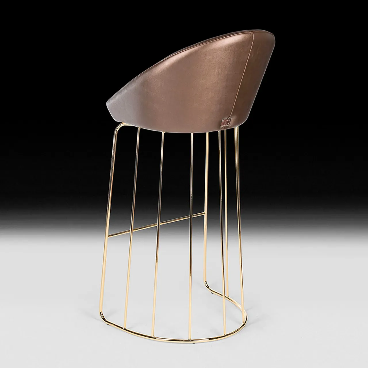 Questo sgabello da bar di grande effetto è un complemento unico per qualsiasi salotto e cucina. La sua struttura aperta a gabbia in filo metallico con finitura oro 24k, dal fascino retrò, sostiene una seduta graziosamente curvata in tessuto Raina Col. Bronze (CAT. A), personalizzabile con molti tessuti, pelli ed ecopelli disponibili. Vero e proprio pezzo di conversazione, questa seduta sarà un accento elegante in qualsiasi ambiente. Su richiesta, sono disponibili certificazioni per il settore contract e commerciale.