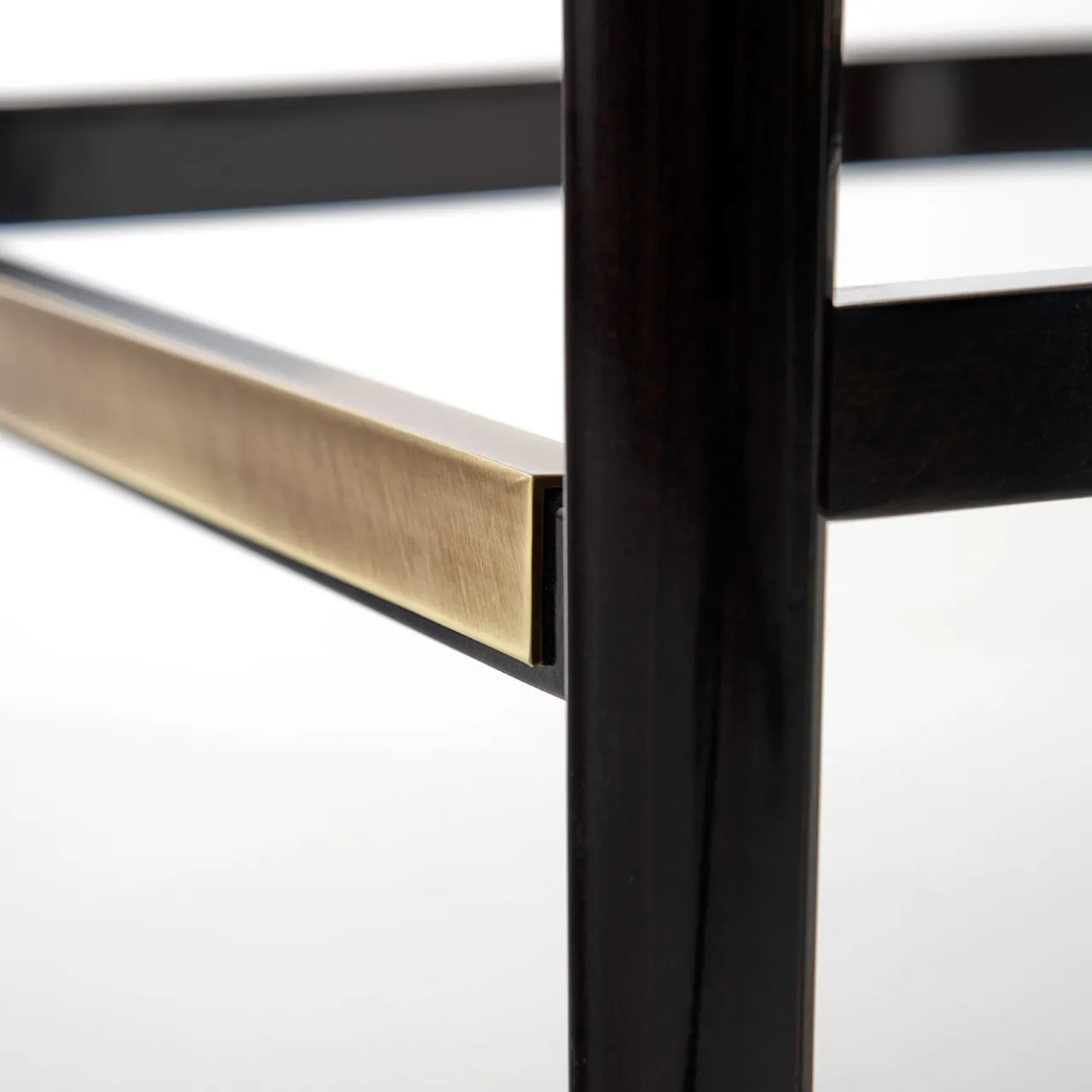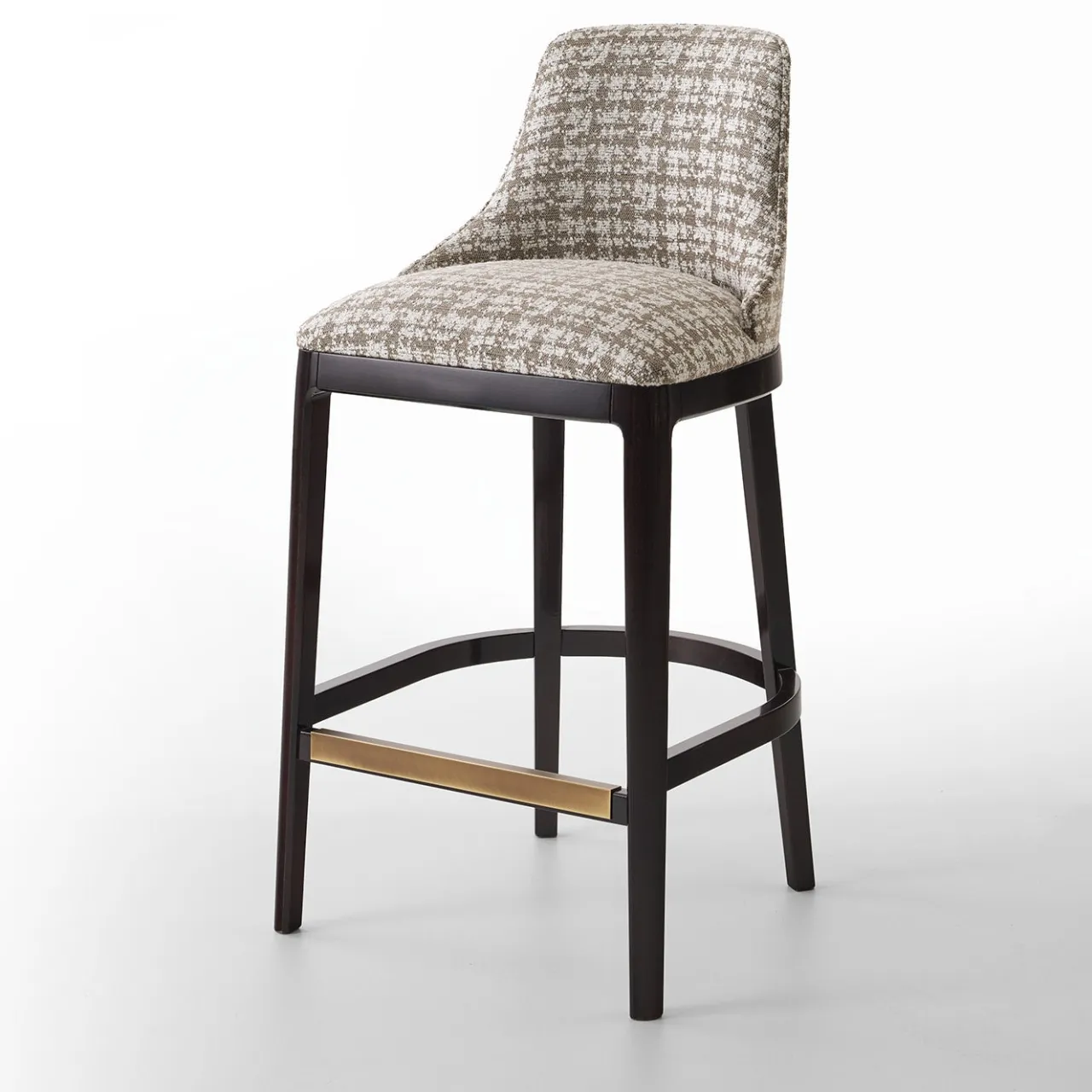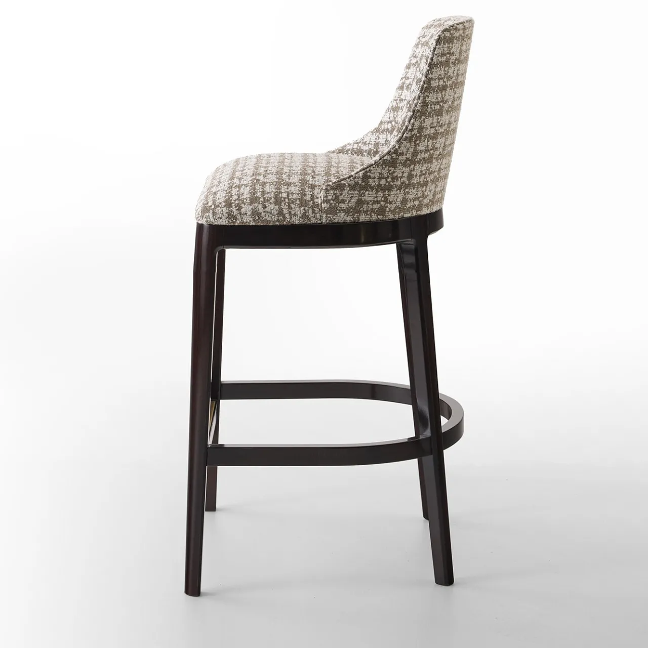 Un motivo accattivante e apparentemente decostruito caratterizza il rivestimento Jab Anstoez che conferisce a questo sgabello da bar un particolare fascino vintage. Rifinito con dettagli di piping che sottolineano il valore sartoriale del design, il rivestimento della seduta avvolge una generosa imbottitura in gommapiuma, garantendo un comfort duraturo quando si sorseggia un buon drink. Una preziosa finitura in ebano nobilita la robusta struttura in faggio, infine equipaggiata con un poggiapiedi in metallo con finitura bronzo patinato.